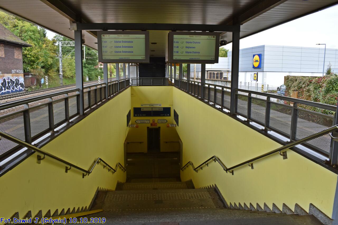 Wyjście z peronu przez przejście podziemne do ulicy Łowickiej lub Alei Niepodległości. Widok w kierunku Gdyni Orłowa/Gdyni Głównej.
