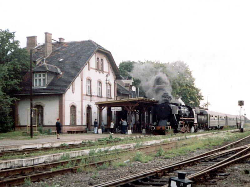 Stacja za czasów regularnych kursów pasażerskich, kiedy to nastawnia dysponująca znajdowała się w budynku dworca. Widok w kierunku północno-wschodnim (Kobierzyce/Wrocław).