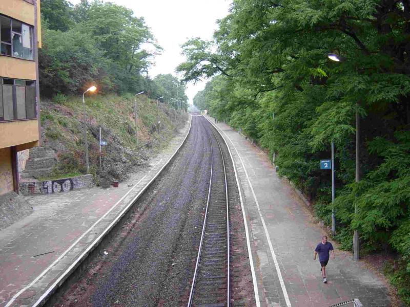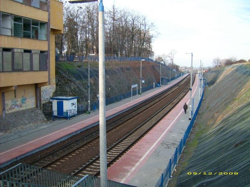 Wjazdy od strony stacji Zgorzelec i Jerzmanek/Lubania Śląskiego. W tle kładka, perony i nieczynny dworzec. Widok w kierunku północnym.