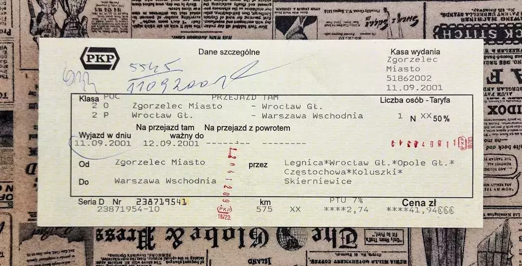Bilet blankietowy wydany na przystanku Zgorzelec Miasto.