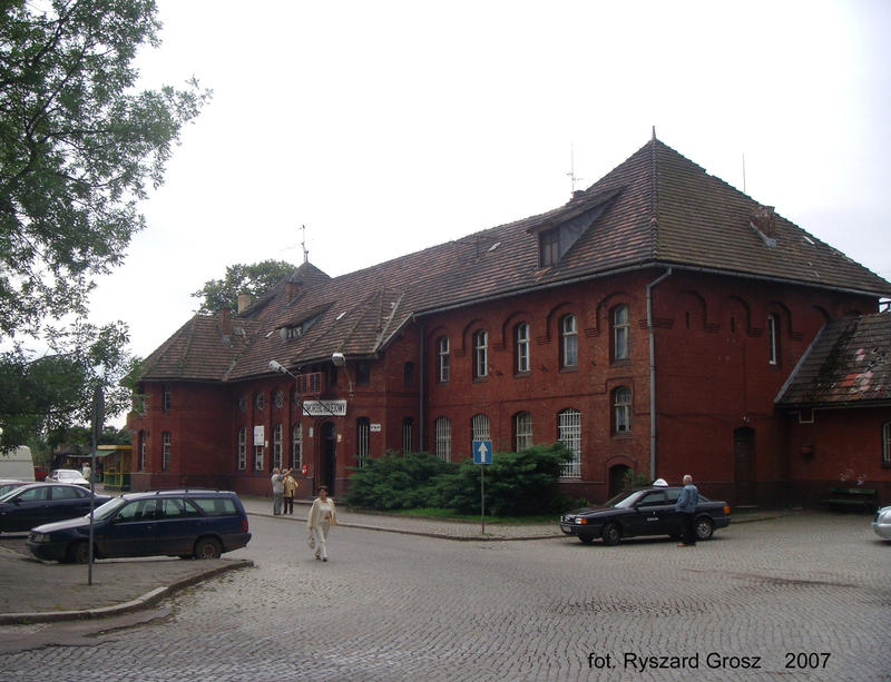 | wieża wodna: | Wieża wodna stoi ok. 120 m na pd-zach od budynku dworca; podobne wieże stoją m.in. na stacjach Gorzów Wlkp.,Słupsk, Złocieniec (info: Bolesław Wojtyniak, 04-08-2012) | |