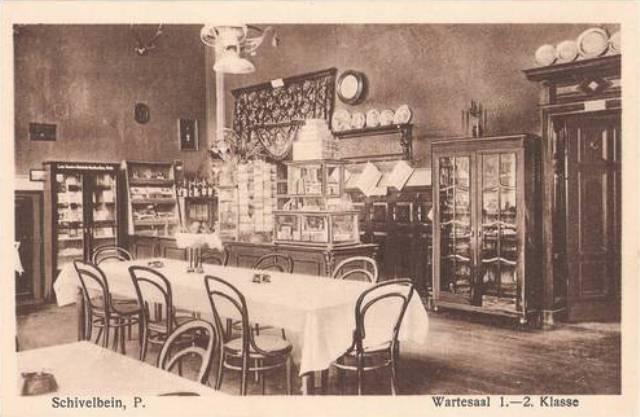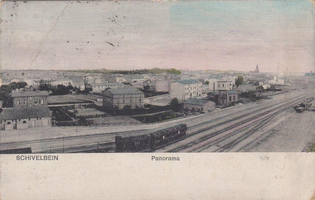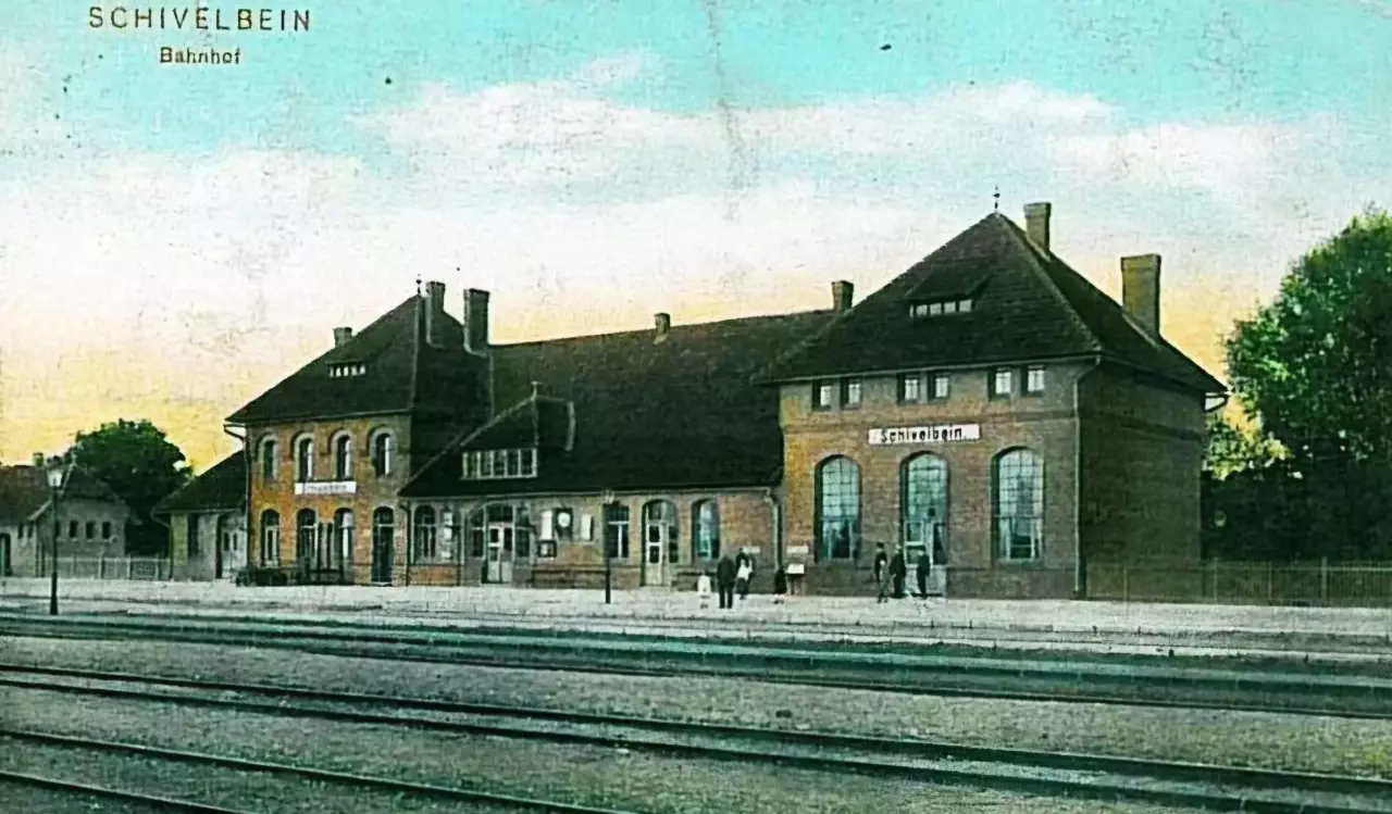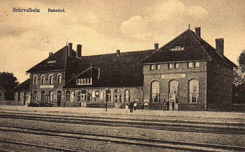 Dworzec Schivelbein. Pocztówkę udostępnił kol Klaus Klitzke. Dworzec od strony peronów przed rokiem 1935 (proszę zauważyć brak wiaty nad peronem oraz brak przejścia podziemnego).