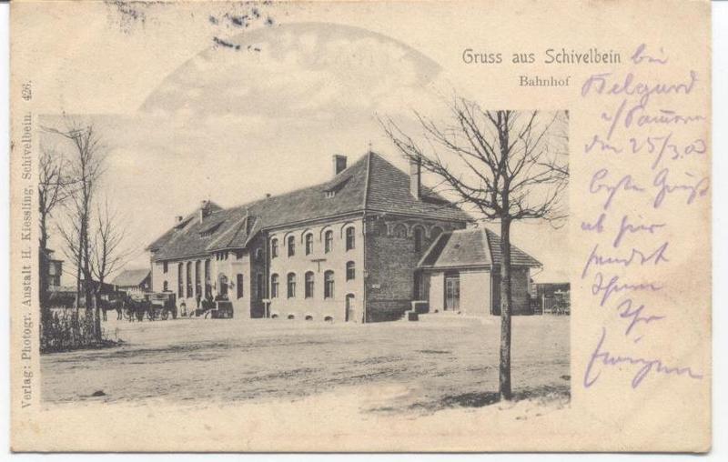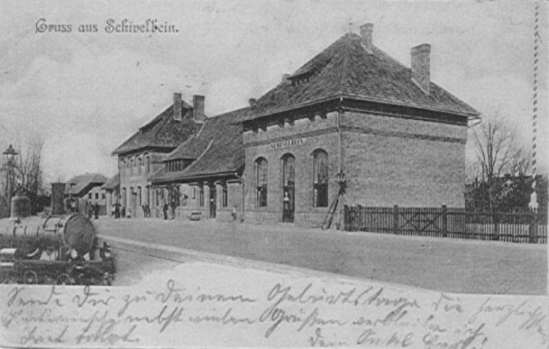 Dworzec Schivelbein. Zdjęcie udostępnine przez kol Klausa Klitzke. Dworzec od strony miasta.