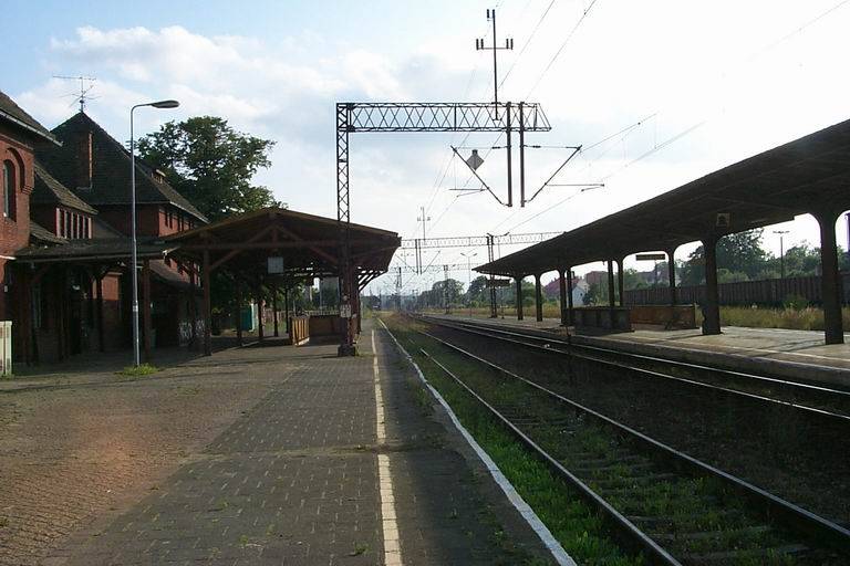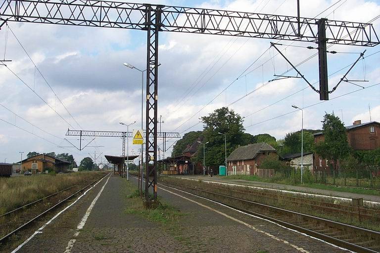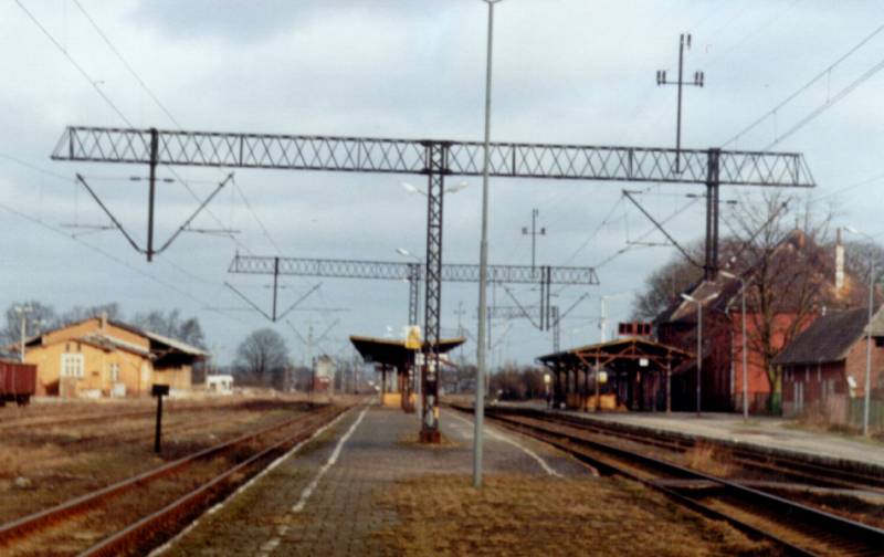 Widok na teren stacji kolejowej. W lewo perony, w prawo Worowo/Stargard.