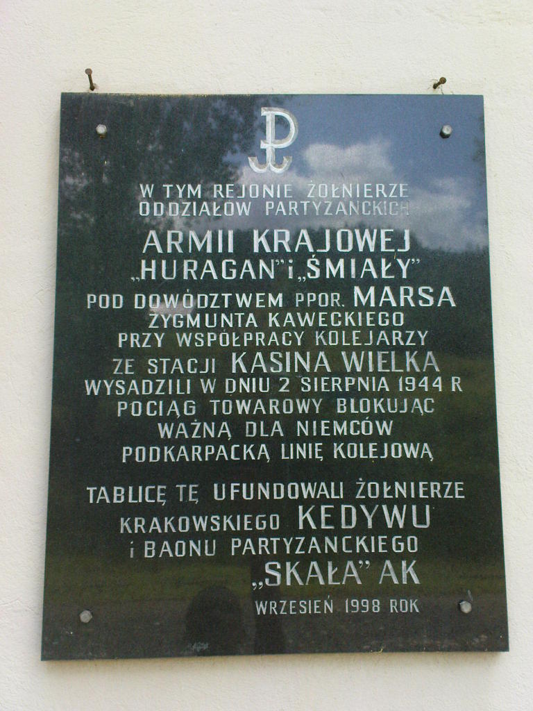 Tablica pamiątkowa umieszczona na ścianie budynku dworca.