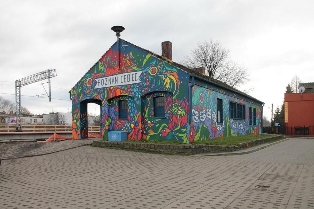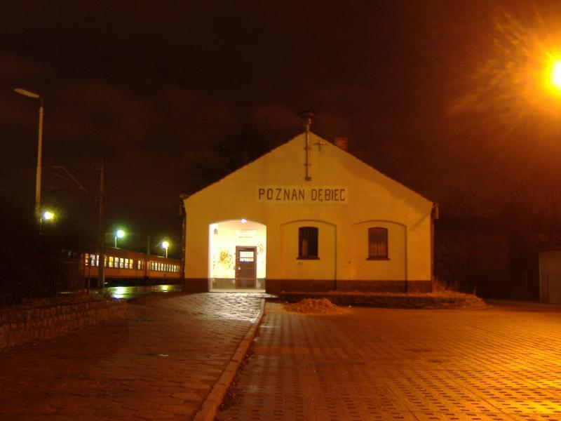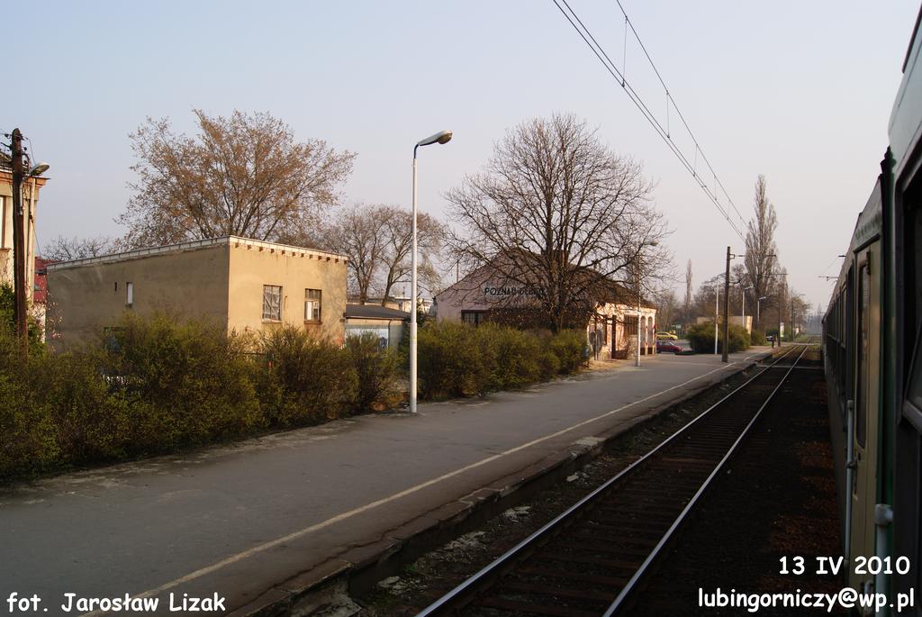 Po prawej widać słup trakcyjny łącznika pomiędzy stacjami Poznań Starołęka a Luboń k. Poznania, w centralnej części pod reklamami widać koniec tramwaju stojącego na pętli Poznań Dębiec. Tunel pod torami oraz wspomnianym łącznikiem znajduje się kilkaset metrów na południe i jest w ciągu ulicy Czechosłowackiej, znacznie bliże przestanku PKP PLK Poznań - Dębiec .