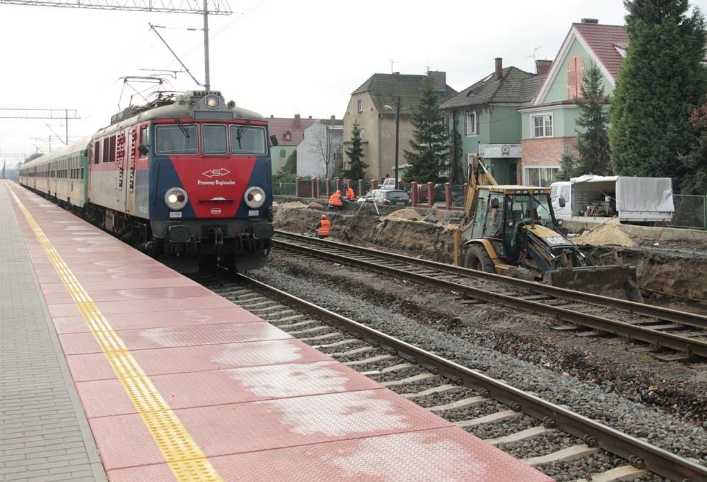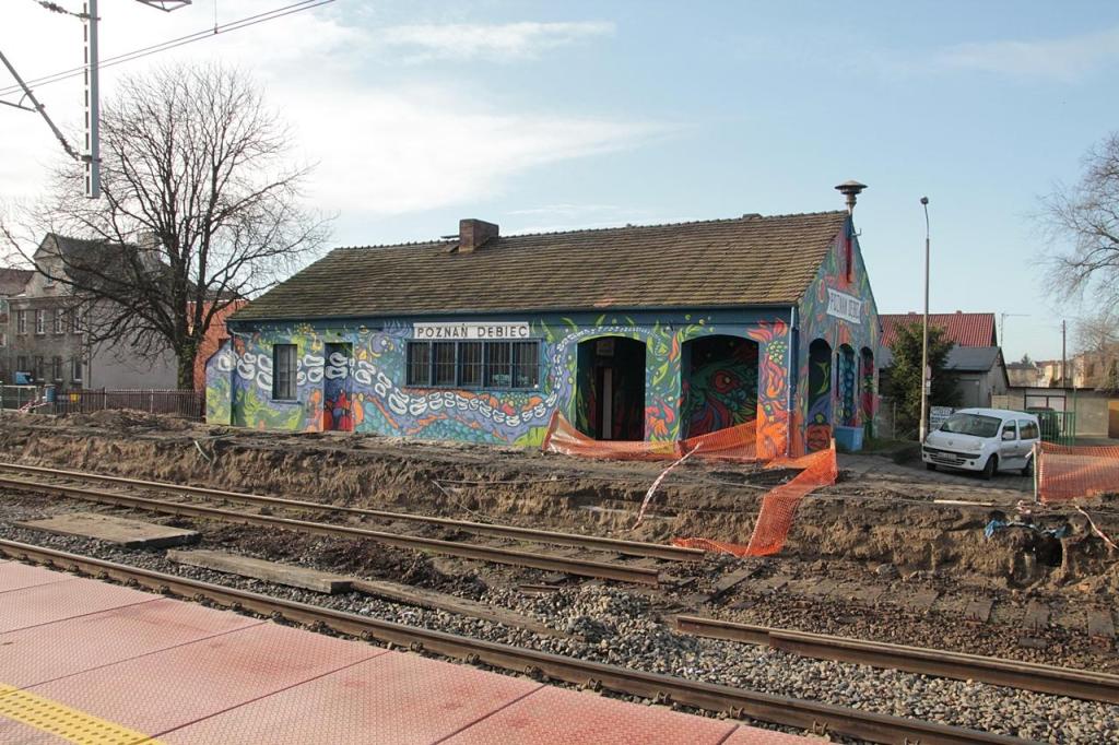 Poznań Dębiec - peron 2, po lewej peron 1 w trakcie modernizacji linii E 59.