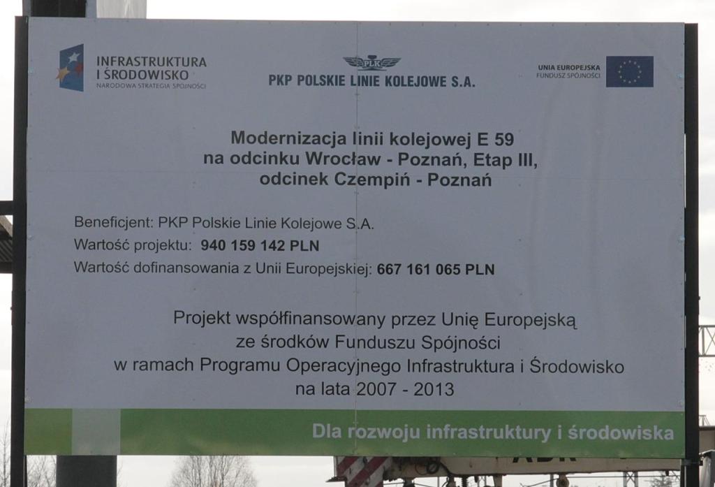 Poznań Dębiec - tablica informacyjna o modernizacji linii E 59.
