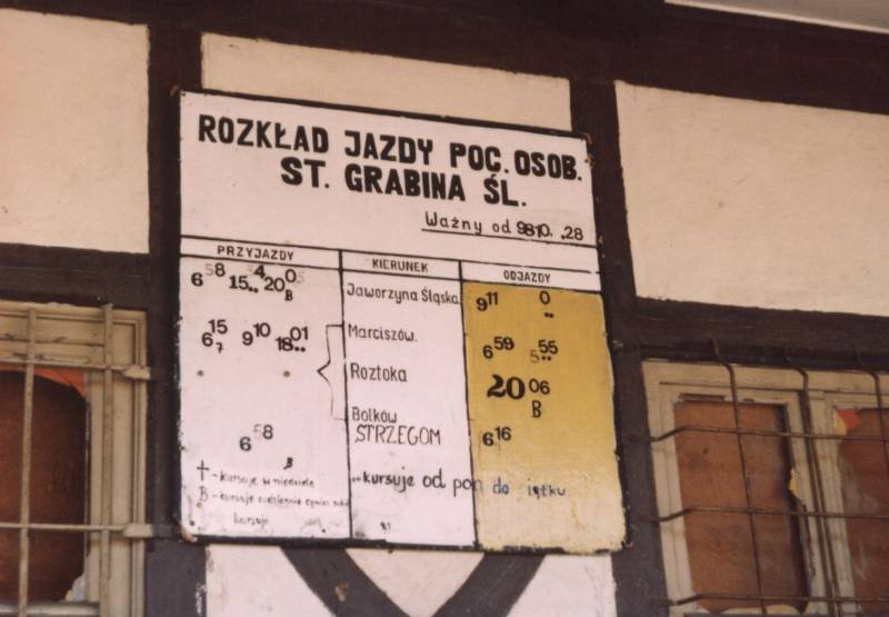 Grabina Śląska. Rozkład jazdy jeszcze wisiał, choć pociągów juz wówczas nie było…