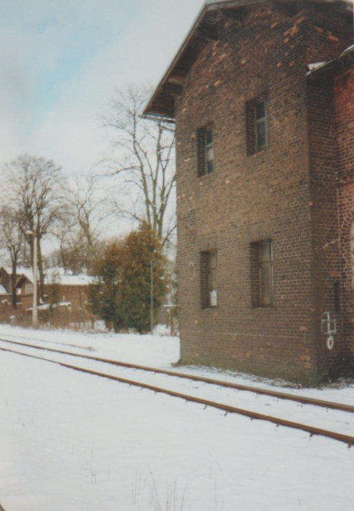 Stacja PKP Wieleń Północny. Budynek dworcowy od strony wschodniej, czyli dawne wejście do toalet.