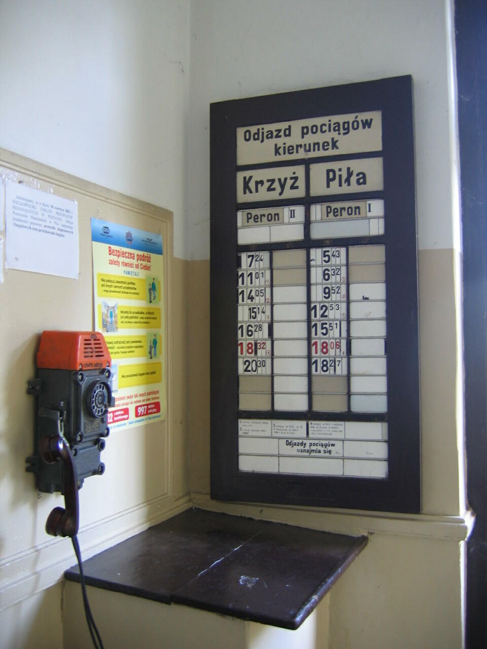 Stacja PKP Wieleń Północny. Środki łączności w hali dworcowej. Bezpośredni kontakt z centralą w Krzyżu.