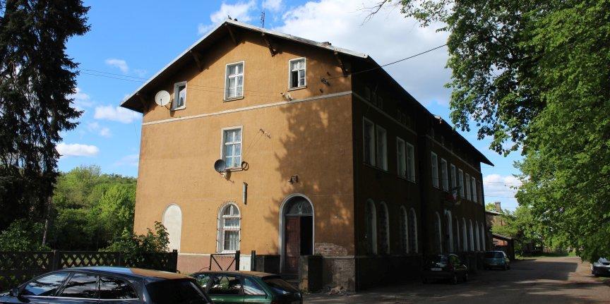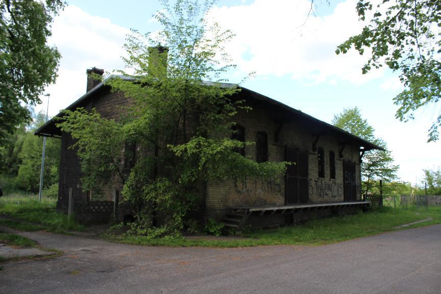 Budynek znajdujący się na terenie stacji, na prawo od budynku dworcowego (patrząc od strony drogi dojazdowej).