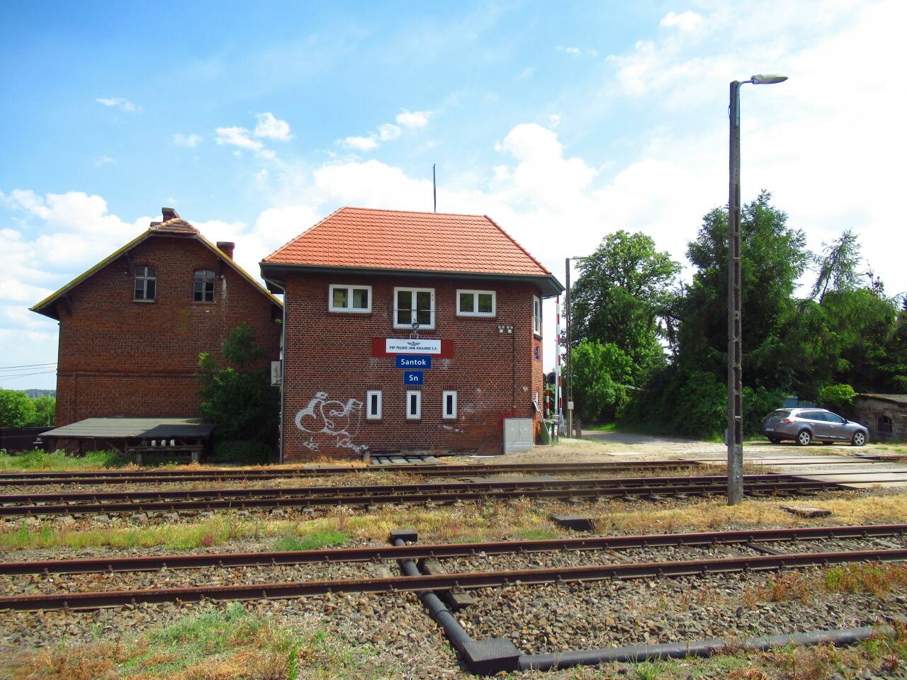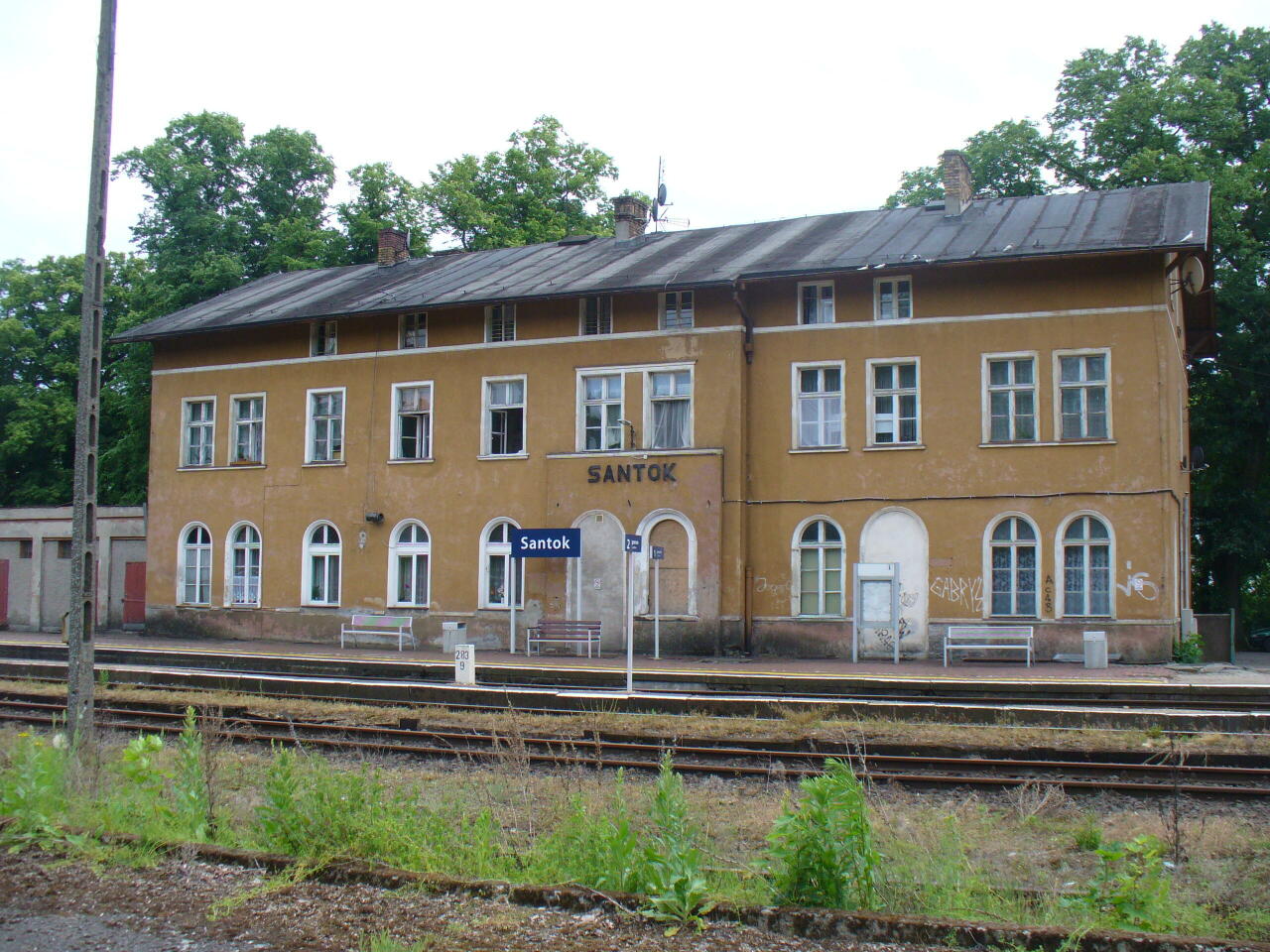 Budynek stacyjny w Santoku. Widok od strony peronów; w lewo Strzelce Krajeńskie Wschód/Krzyż, w prawo Gorzów Wielkopolski.