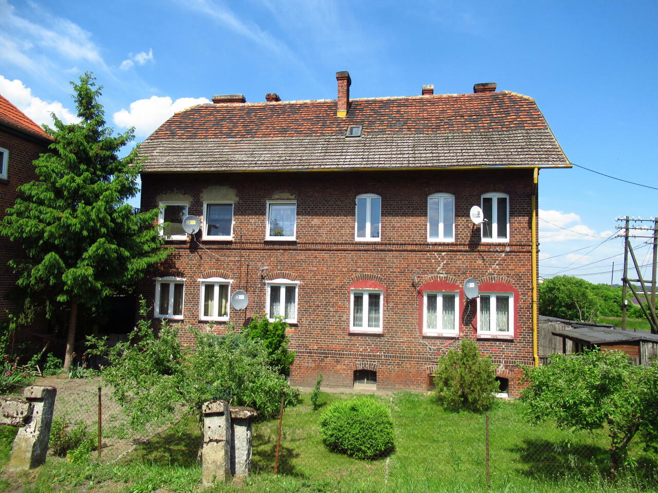 Kolejowy budynek mieszkalny stojący przy nastawni dysponującej (z lewej). Widok w kierunku zachodnim.