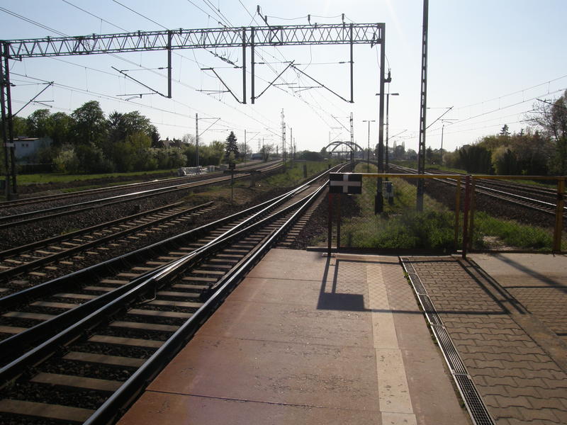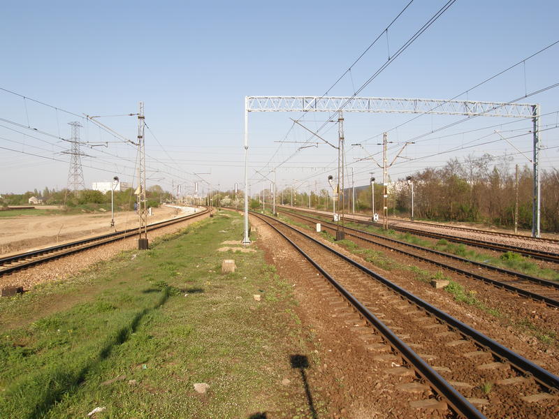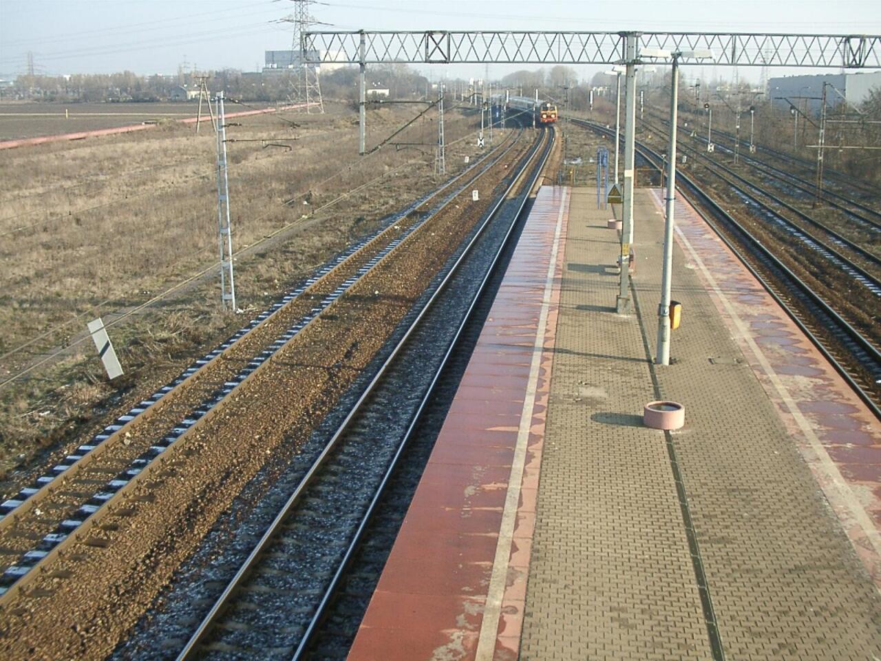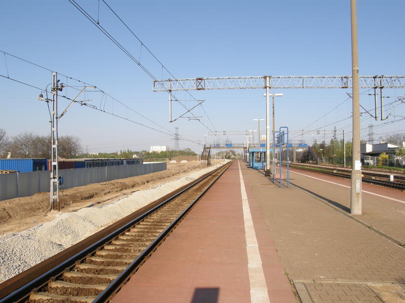 Widok w stronę Warszawy Ursusa Północnego i Warszawy Głównej Towarowej. Od lewej tor nr 2 łącznicy Warszawa Główna Towarowa - Warszawa Gołąbki, tory nr 2 i 1 linii Warszawa Zachodnia - Kunowice, tor nr 1 łącznicy Warszawa Główna Towarowa - Warszawa Gołąbki, tory nr 2 i 1 linii Warszawa Główna Towarowa - Józefinów.