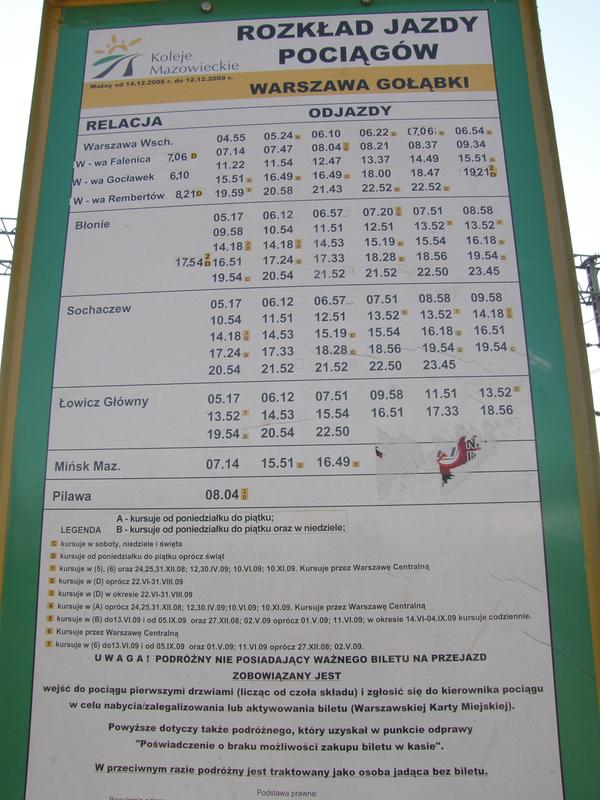 Rozkład jazdy ważny od 14-12-2008 do 12-12-2009 z korektą od 1-04-2009.