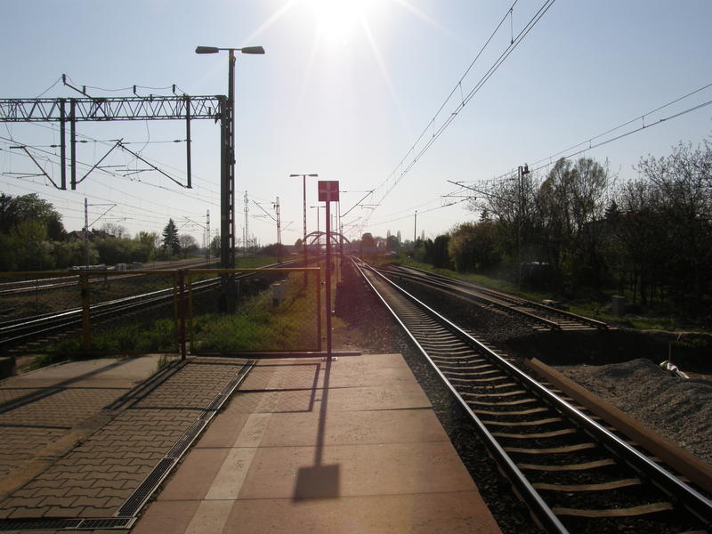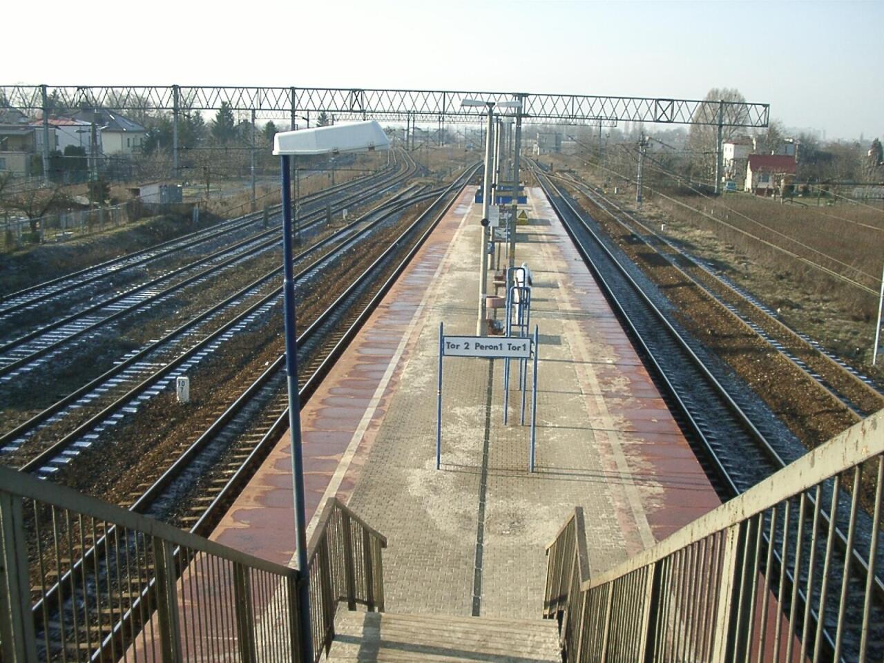 Zdjęcie z kładki na północną stronę przystanku. Mieszkając w okolicy można się chwalić, że ma się pod domem własny przystanek kolejowy.