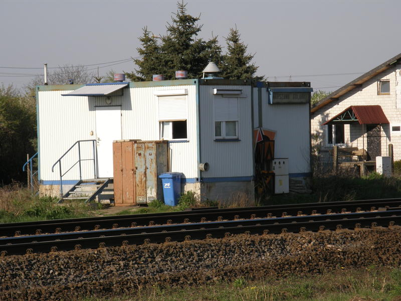 Posterunek odgałęźny Warszawa Gołąbki. Dziś tylko budka dróżnika przejazdowego. Zdjęcie z przejazdu drogowego w ciągu ulicy Przejazdowej.