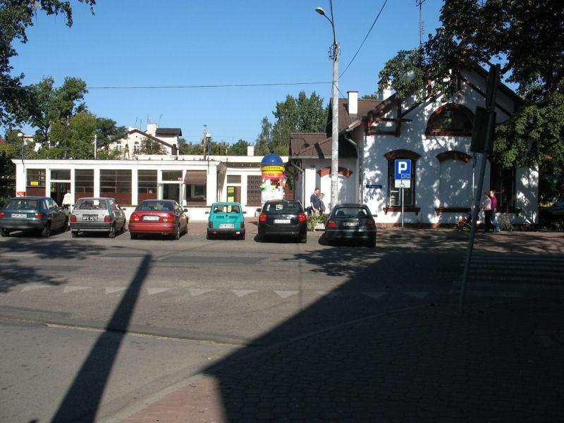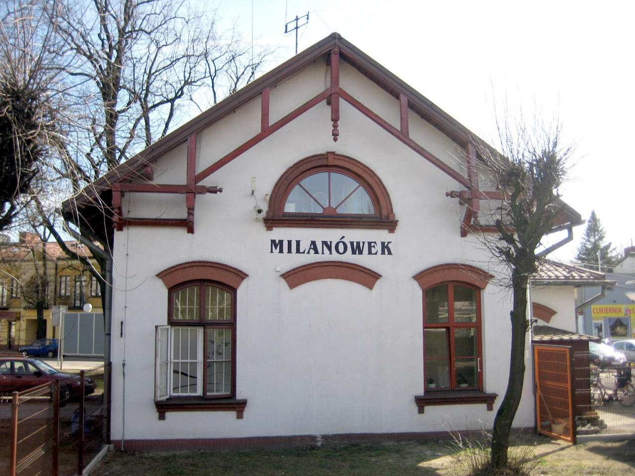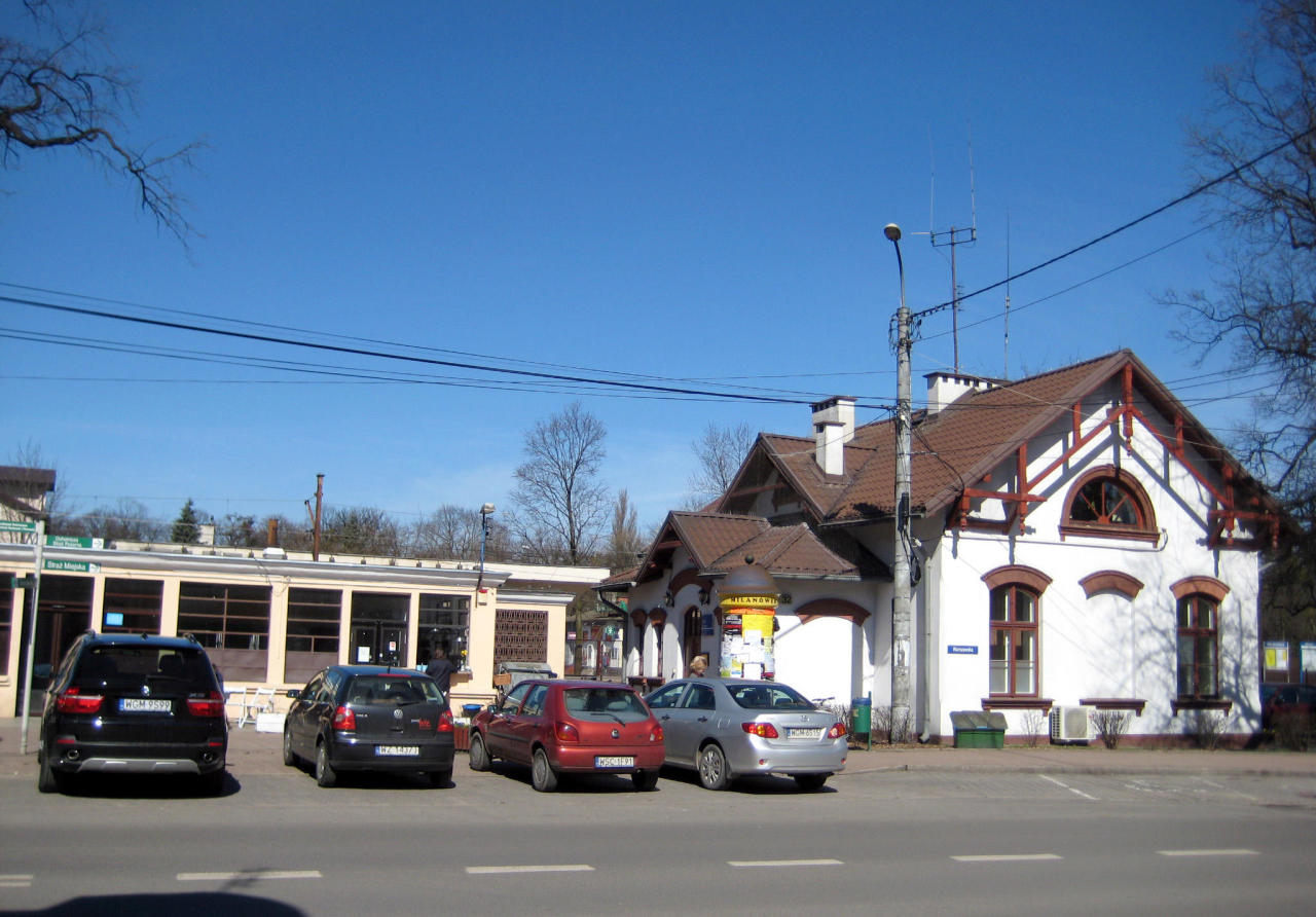 Budynek dworca w Milanówku od strony ulicy.