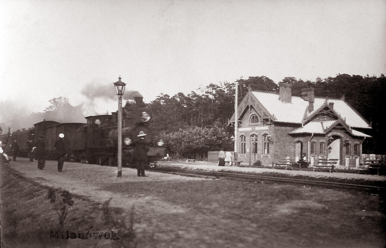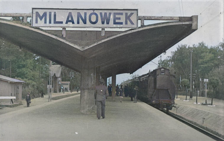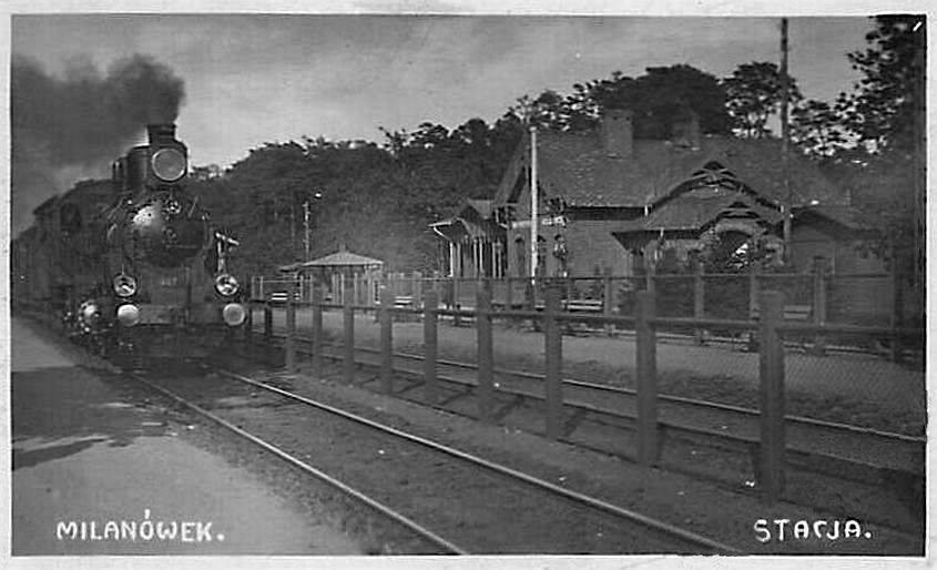 Przystanek kolejowy w Milanówku - ze zbiorów miejscowej Biblioteki Publicznej (domena publiczna).
