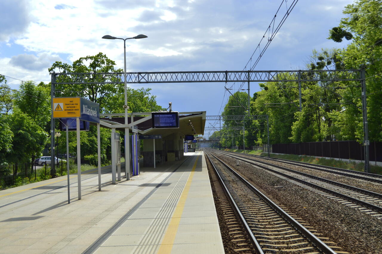 Widok ogólny na przystanek osobowy w Milanówku.