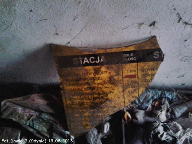 W piwnicy budynku dworcowego pośród stosu materaców, poduszek, puszek, smrodu itp udało się znaleść kawałek dawnej tablicy od PKP SKM.