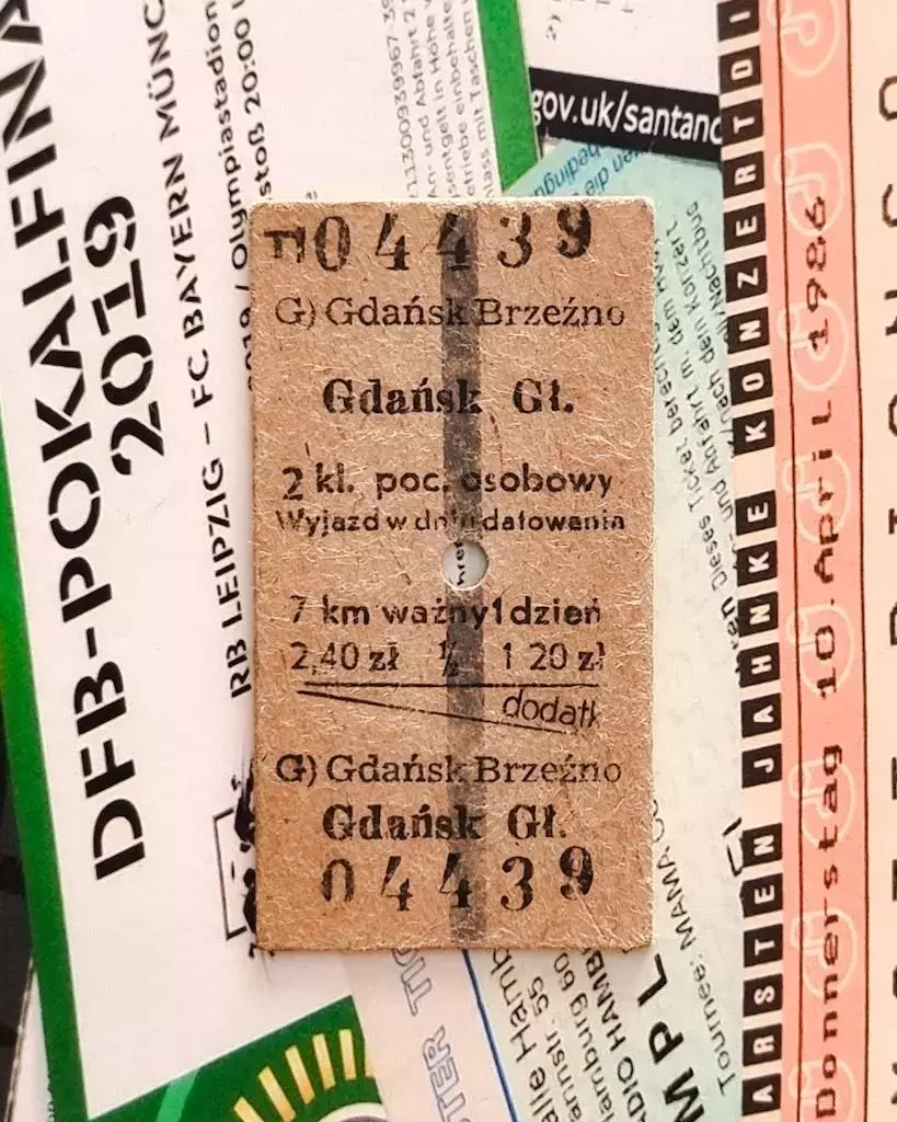 Bilet kartonikowy wydany na przystanku Gdańsk Brzeźno.