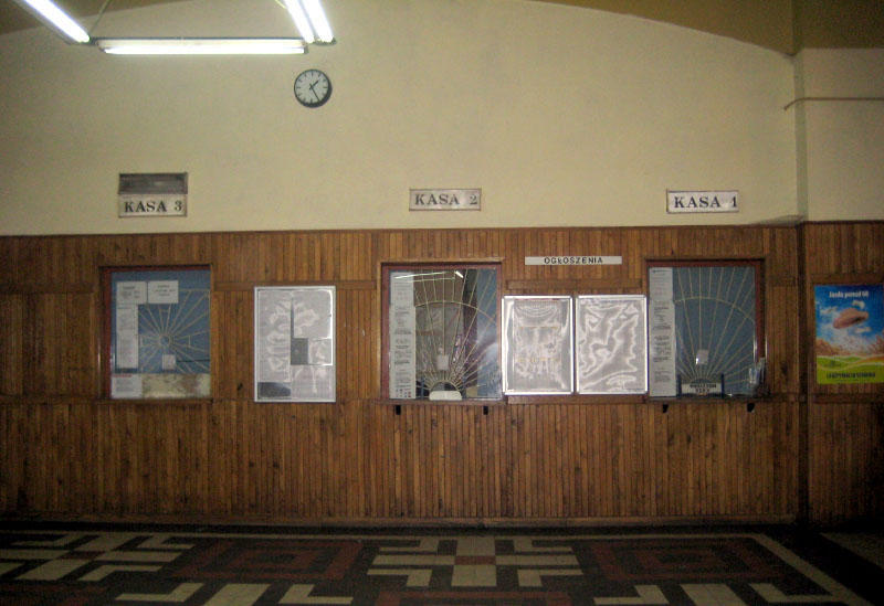 Stacja PKP Radomsko. Kasy biletowe w budynku dworcowym.