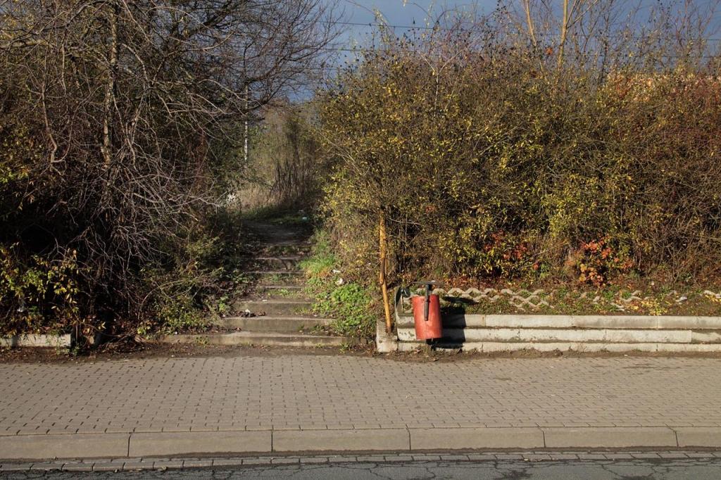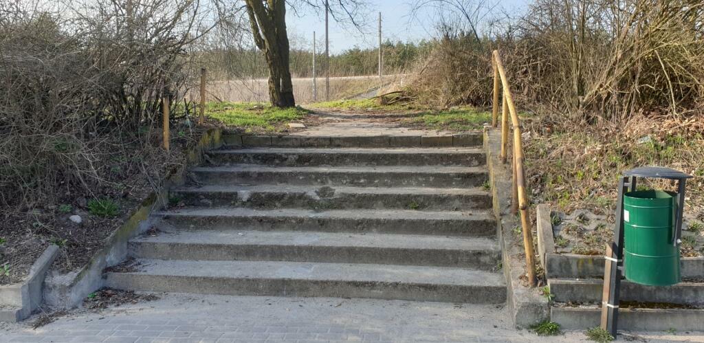 Wejście na peron od strony ulicy Szumana. Schody są oczyszczone i w nienajgorszym stanie.