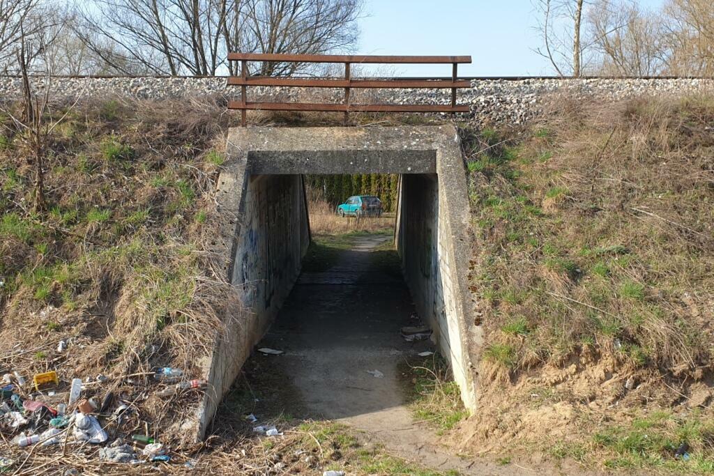 Przepust kolejowy dla pieszych pod sąsiednim torem prowadzi w kierunku działek. W lewo Stary Młyn, w prawo Swarzędz.