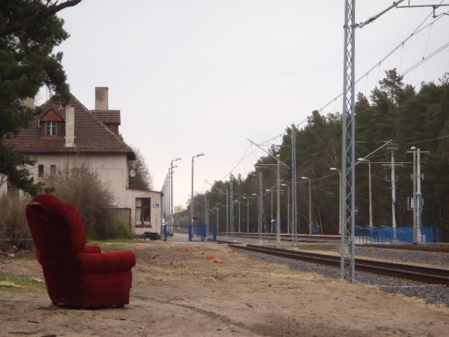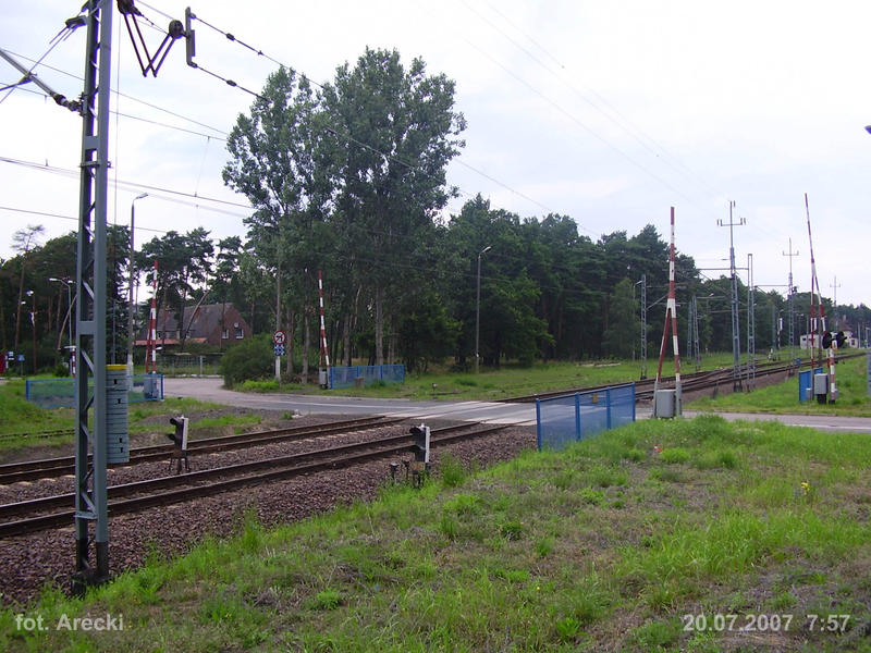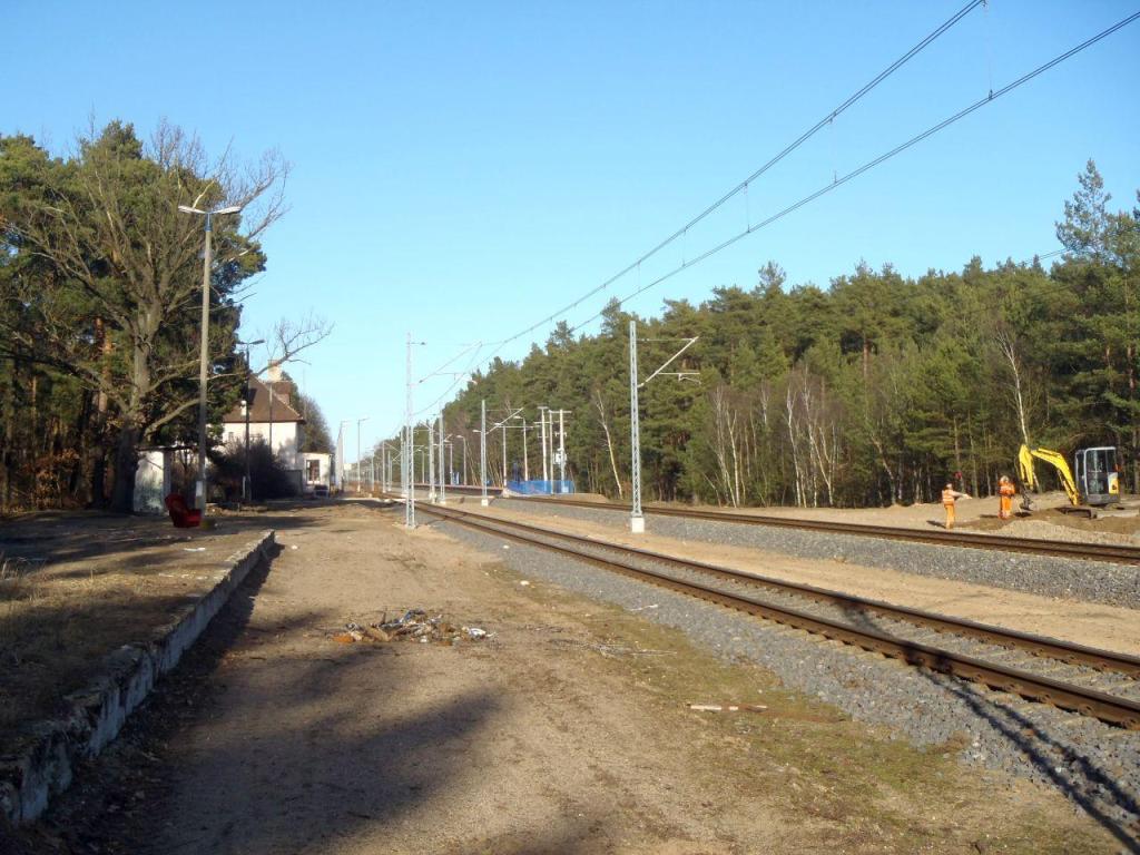 W dniu wykonania zdjęcia istniały rozjazdy (już nie istnieją), w tym rozjazd na tor dodatkowy (już nie istnieje) pod magazyn (już nie istnieje) i na bocznicę (już nie istnieje) fabryki kabli (już nie istnieje). Później ten tor dodatkowy zlikwidowano, ale jeszcze do 2011 r. funkcjonowała jeszcze nastawnia (już nie istnieje) z poczekalnią (już nie istnieje, ale do 1.06.2009 r. istniała jeszcze z kasą biletową (już nie istnieje)). Wraz z likwidacją posterunku zlikwidowany został odstęp, który miał być zastąpiony automatyczną lub zdalnie sterowaną sygnalizacją odstępową. Sygnalizatory te były unieważnione przez dobrych ponad 5 lat. (Poprawka: Zautomatyzowany odstęp został uruchomiony w 2022 r.).