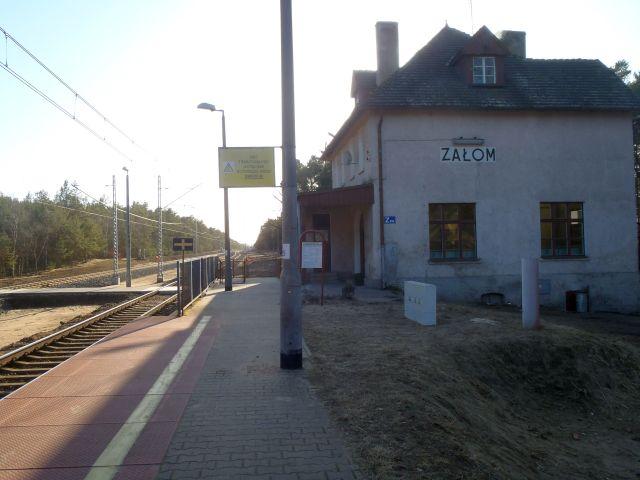 Szczecin Załom, stacja tuż po remoncie polegającym na dobudowie peronu nr 1 (po prawej), częściowo płoty jeszcze nie pomalowane, a postawione w sposób utrudniający dojście do peronów (dojście do peronów zablokowane od strony robiącego zdjęcie);
