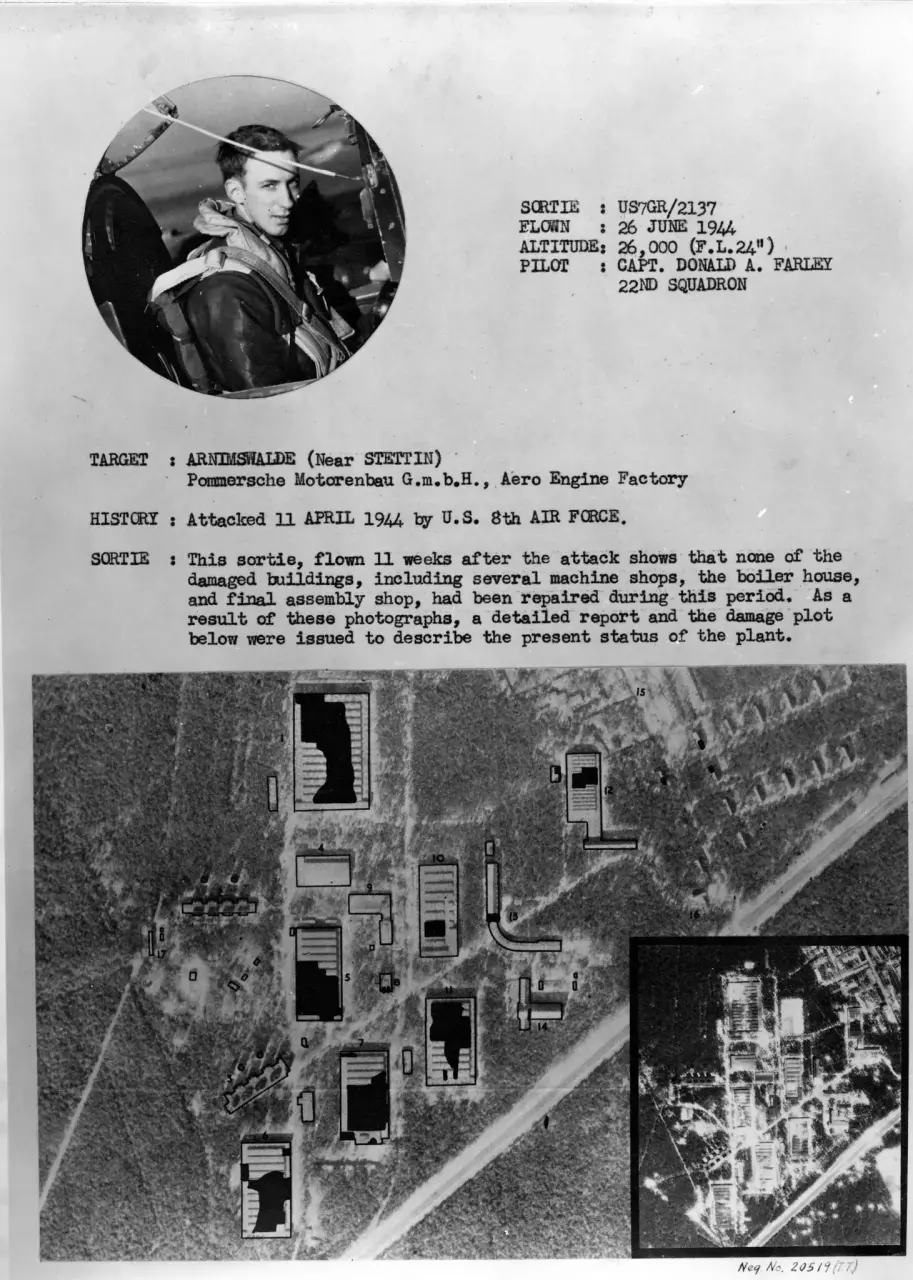 Dossier i raport z lotu zwiadowczego w 11 tygodni po zbombardowaniu fabryki silników do samolotów w Załomiu.
