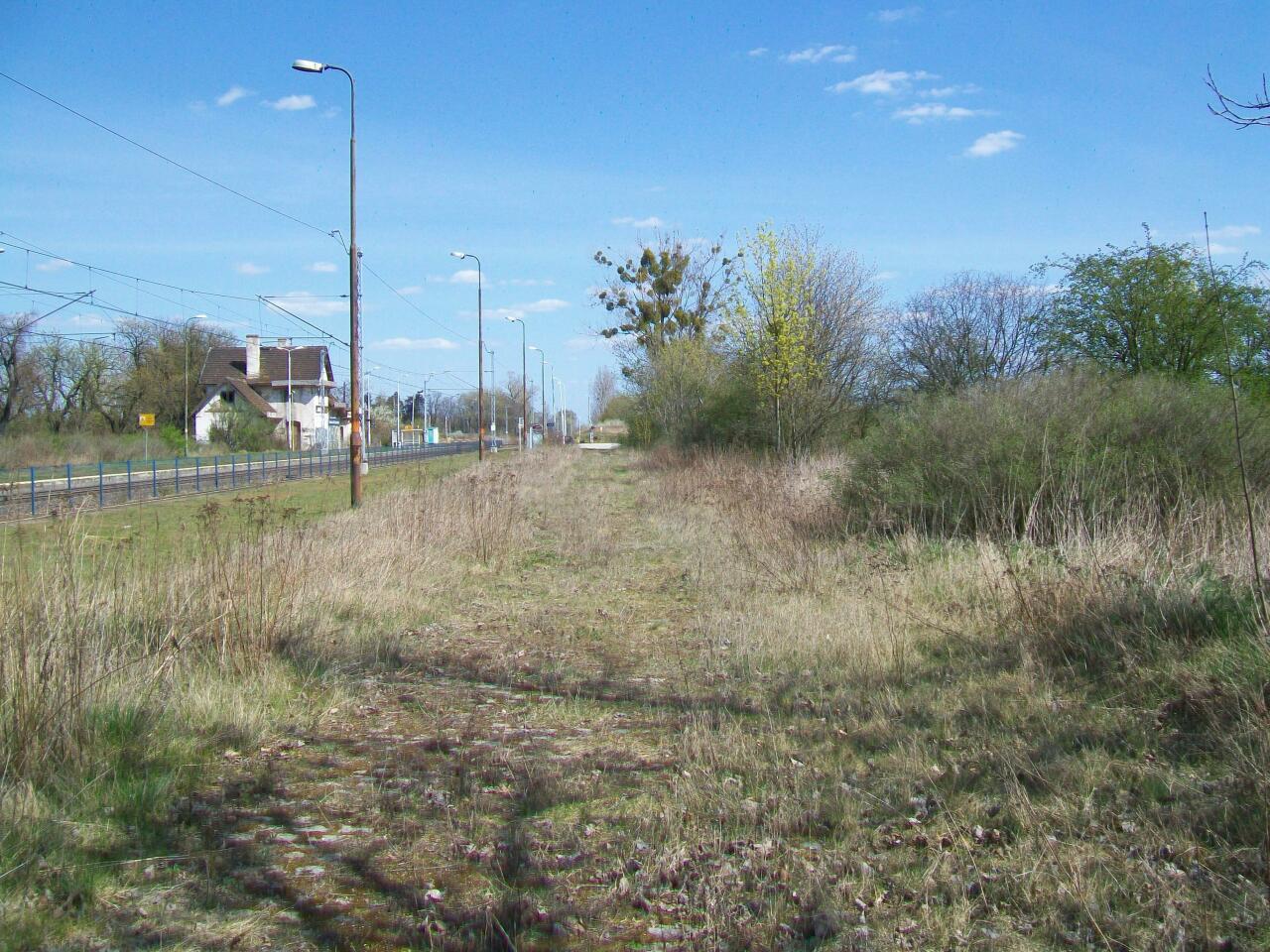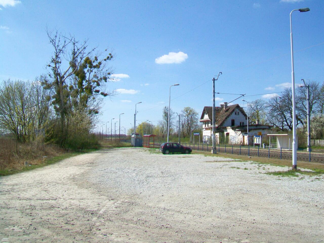 Utwardzony plac położony przy peronie 1 - być może był tu niegdyś tor dodatkowy, na którym podstawiano wagony towarowe na przeładunek. Widok w kierunku północno-wschodnim (Wrocław).