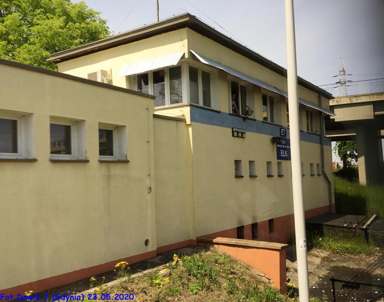 Budynek nastawni "ET2” widoczny od strony torów. W lewo Ełk (stacja kolejowa), w prawo Grajewo/Białystok i Pisz/Olsztyn Główny.