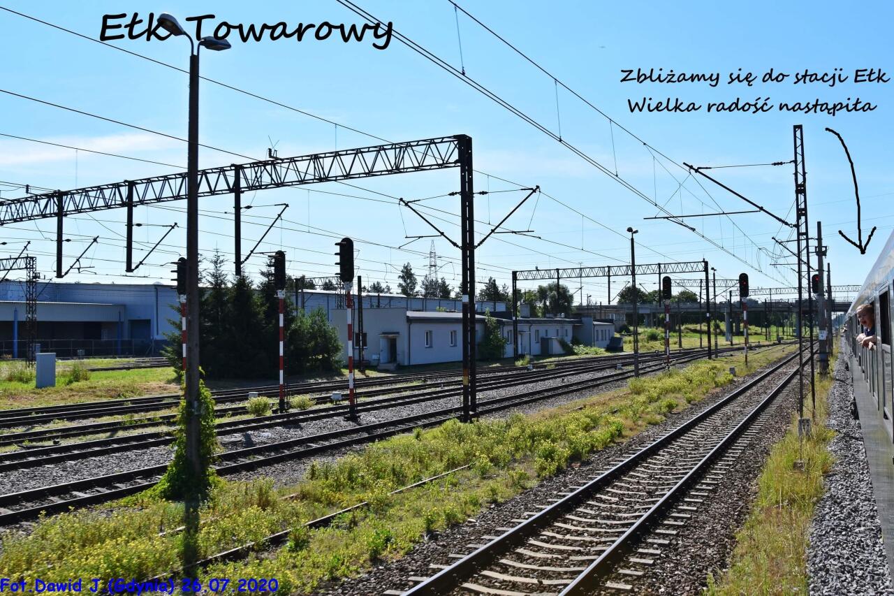 Ełk Towarowy. Pierwszy tor - szlak z Olsztyna przez Szczytno, Drugi tor - szlak z Białegostoku. Miejscowe ograniczenie prędkości do 50 km/h.