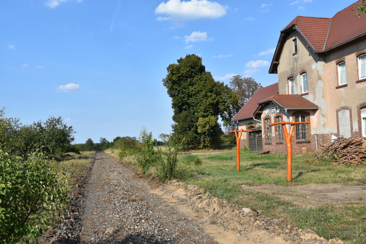 Przystanek kolejowy w Lubięcinie. Krótko po demontażu torowiska: (.