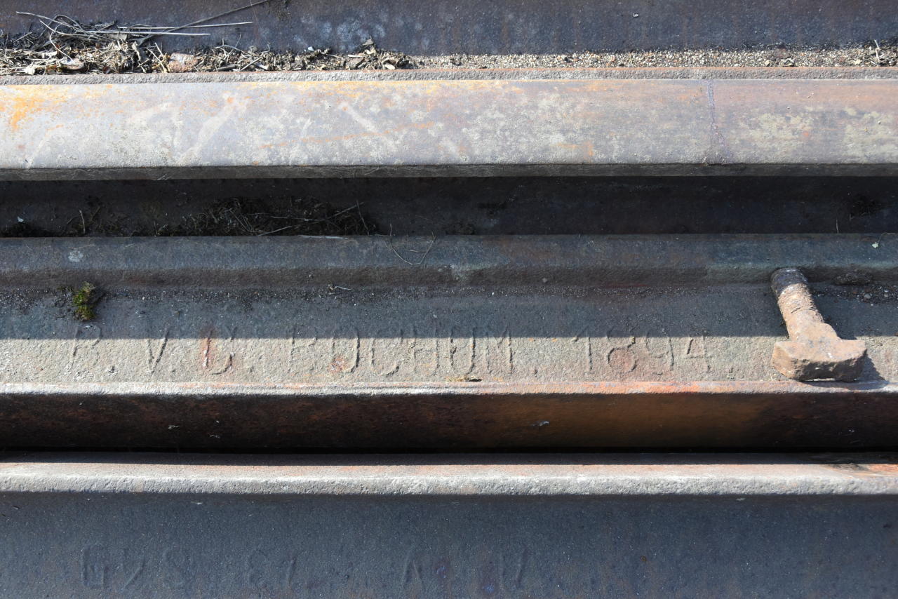Lubięcin - szyna z 1894 roku z walcowni w Bochum.