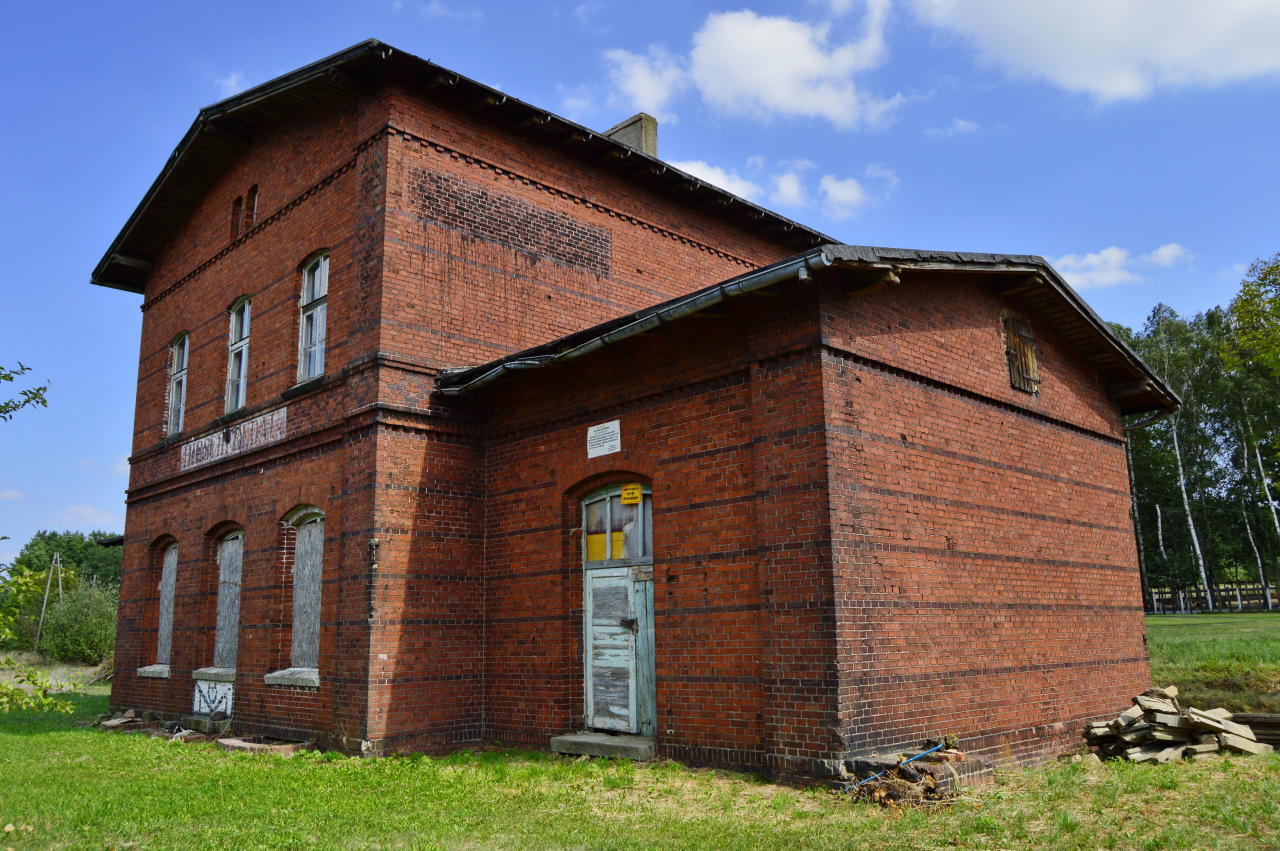 | budynki dworcowe: | Budynek zabezpieczony zabitymi oknami jednak nie ma połówki dachu nad częścią mieszkalną. | |