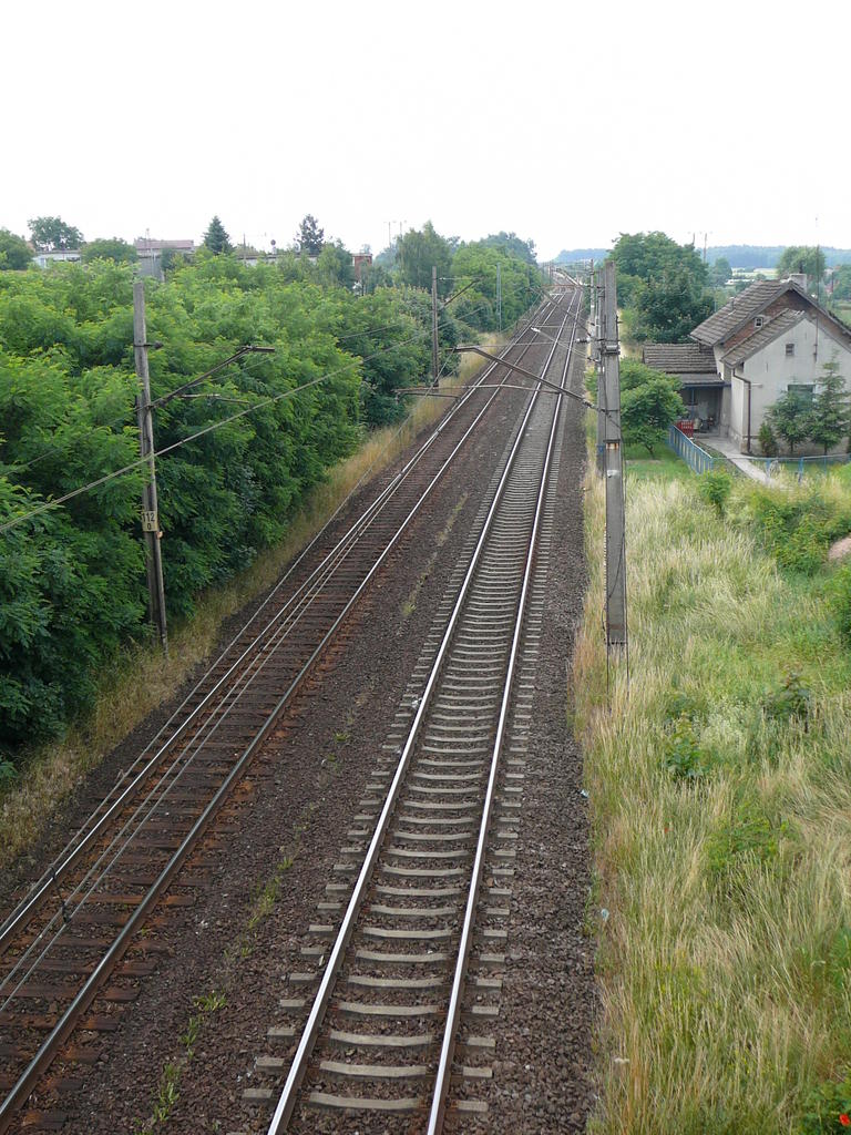 Stare Bojanowo. Widok z wiaduktu w ul. Mostowej, kierunek Wrocław.