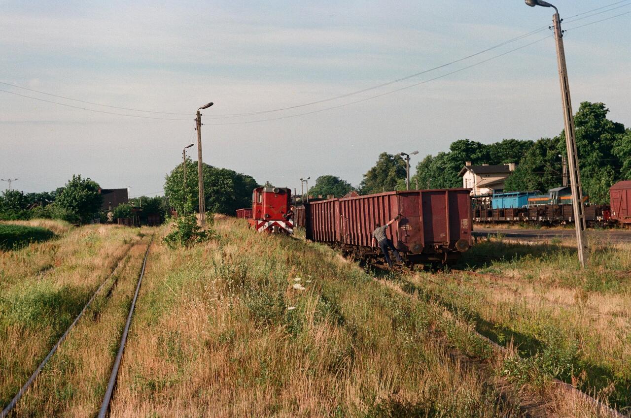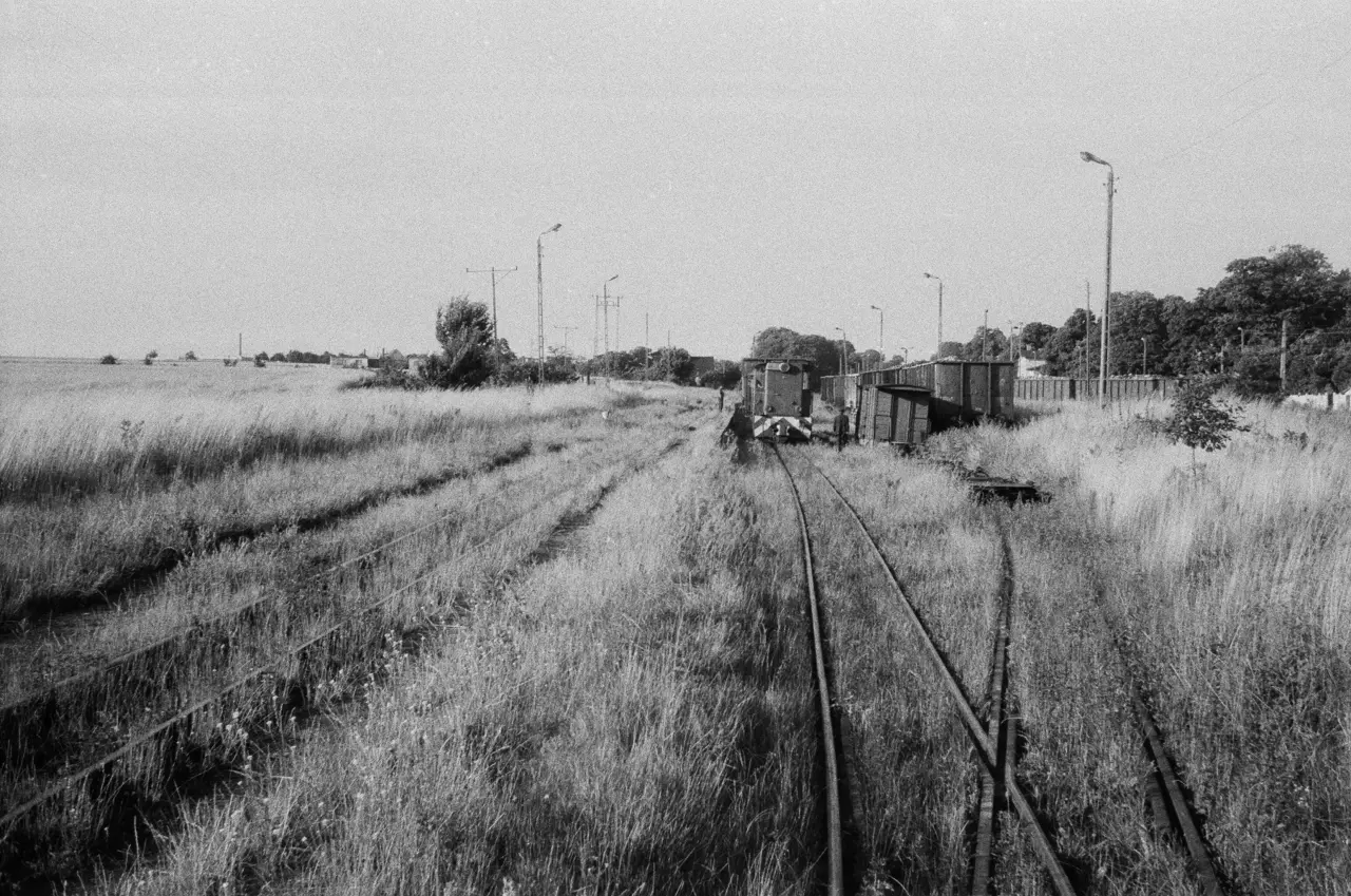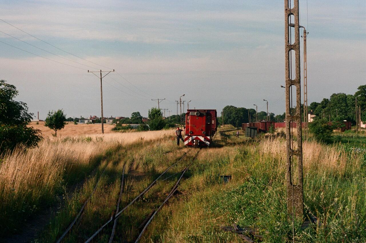 Stacja Stare Bojanowo Wąskotorowe (punkt przeładunkowy) - lokomotywa Lxd2-326 na manewrach stacyjnych, widok w kierunku stacji Wielichowo (Rakoniewice Wąskotorowe).