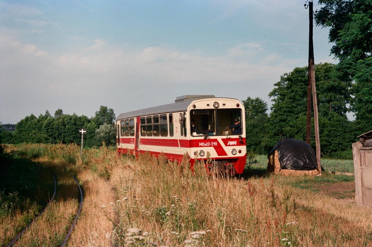 Stacja Stare Bojanowo Wąskotorowe (grupa pasażerska) - wagon spalinowy MBxd2-218 w oczekiwaniu na zatrudnienie, widok w kierunku stacji Wielichowo (Rakoniewice Wąskotorowe). Na dalszym planie nastawnia dysponująca "BS" stacji normalnotorowej Stare Bojanowo - widok w kierunku stacji Leszno (Wrocław Główny).