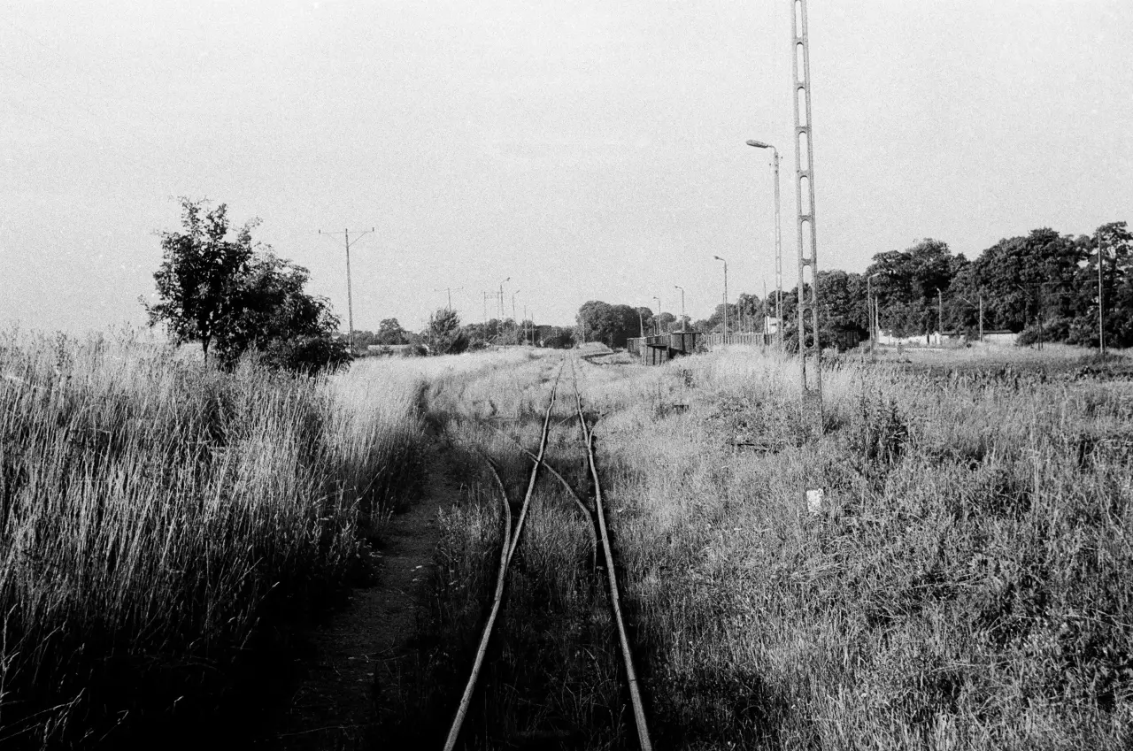 Stacja Stare Bojanowo Wąskotorowe - widok w kierunku punktu przeładunkowego i stacji Krzywiń - odcinek rozebrany.