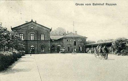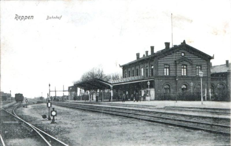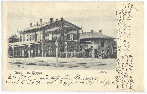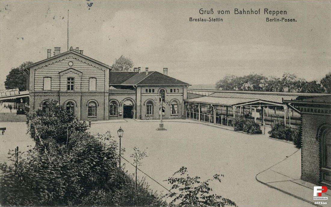 Dworzec w Rzepinie od strony miasta. Wejście już z zadaszeniem. Widok w kierunku zachodnim. Z prawej (niewidoczne) perony 1, 2 i 3 (obecnie zlikwidowany) po jego północnej stronie, obsługujące ruch na E20 i do Sulęcina/Międzyrzecza. Z lewej (niewidoczne) perony 4 i 5, po jego południowej stronie, obsługujące ruch po Nadodrzance.