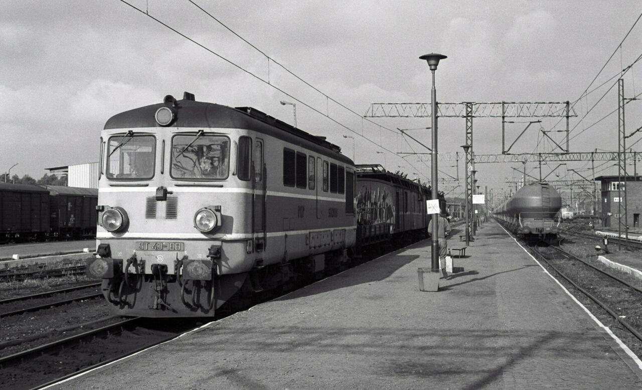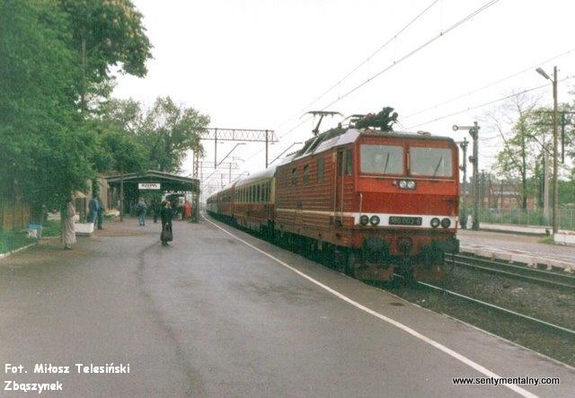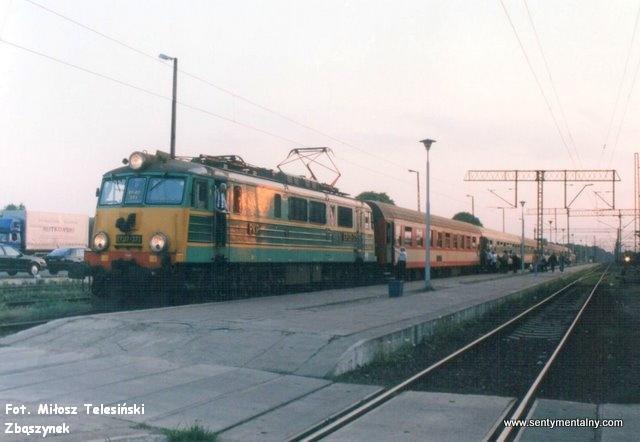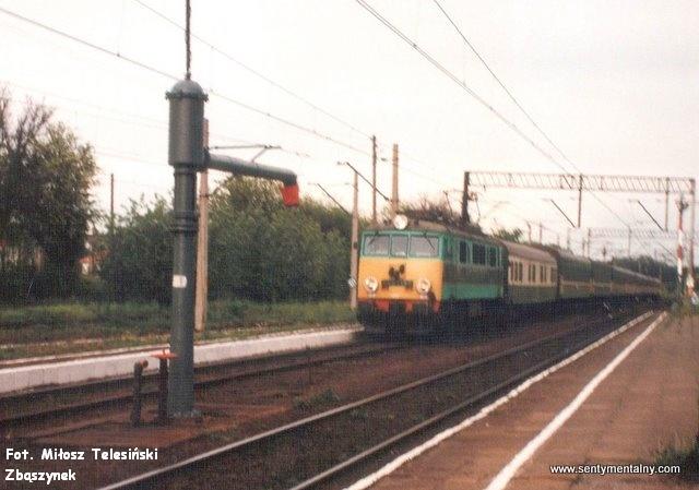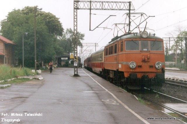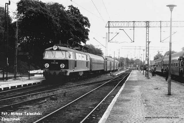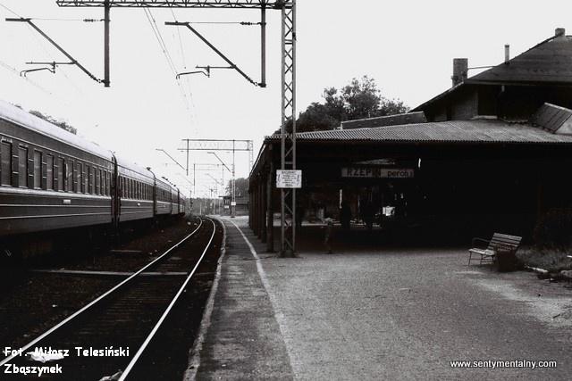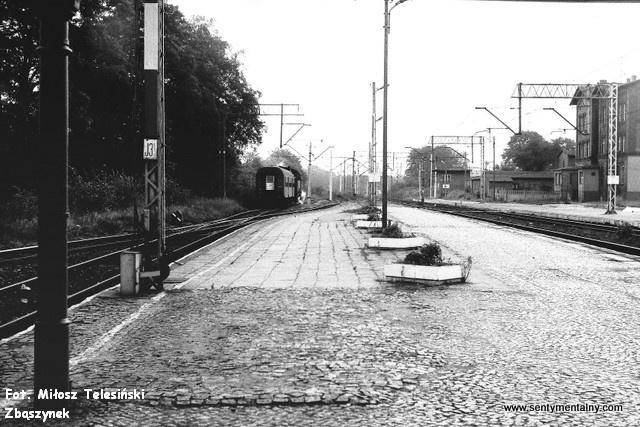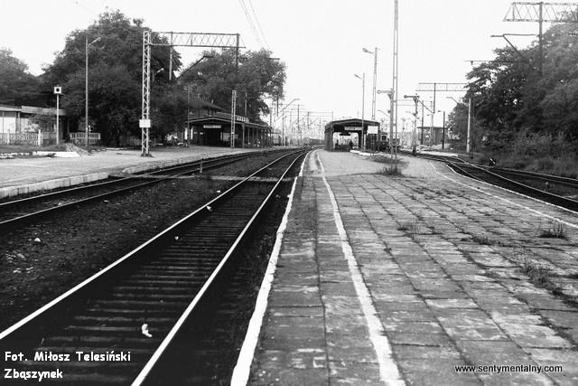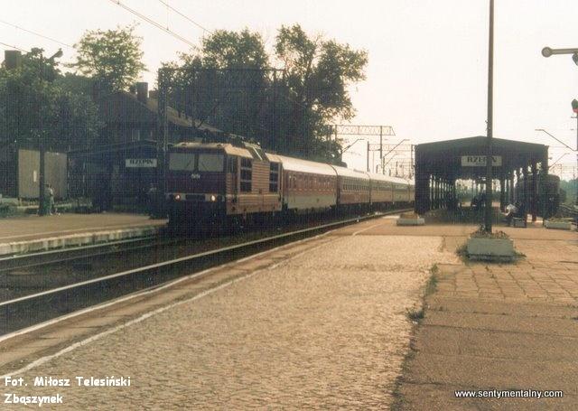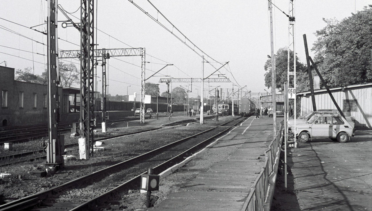 "Varsowia" przed podmianą oczekuje przy peronie 1. Z prawej strony kadru widoczny peron 2 i semafory kształtowe oraz niewielki fragment, zlikwidowanego obecnie peronu 3. Północna strona dworca (z lewej, za drzewami), obsługująca ruch na E20 i do Sulęcina/Międzyrzecza. Widok w kierunku zachodnim (Kunowice/Frankfurt nad Odrą, Kostrzyn).