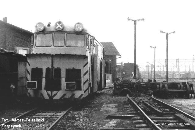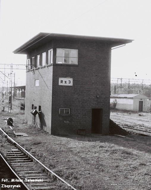 Pociąg roboczy z Rumunem na czele stoi przy peronie 5, po południowej stronie dworca (z prawej, poza kadrem), obsługujący ruch po Nadodrzance oraz w relacji Zielona Góra - Frankfurt nad Odrą. W tle stoi nastawnia wykonawcza Rz3. Widok w kierunku zachodnim (Kunowice/Frankfurt nad Odrą i Kostrzyn nad Odrą).