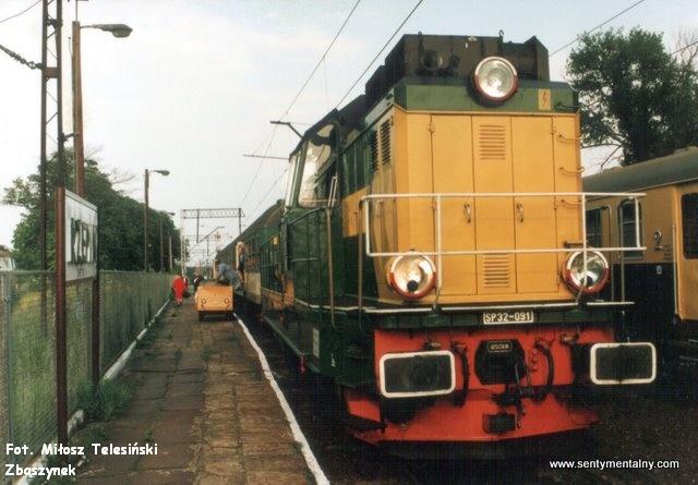 Peron 3, obecnie zlikwidowany. SP32-091 z Międzyrzecza w Rzepinie przyprowadziła pociąg osobowy z Sulęcina. Przywiózł planowo kasę ambulansową. Północna strona dworca (z prawej, poza kadrem), obsługująca ruch na E20 i do Sulęcina/Międzyrzecza. Widok w kierunku wschodnim (Toporów/Zbąszynek, Sulęcin/Międzyrzecz).