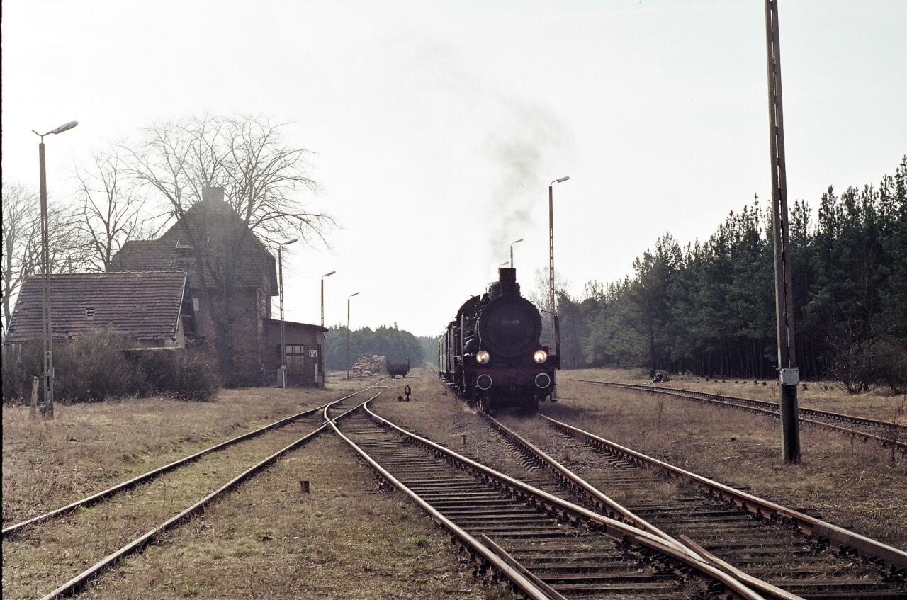 Po obrocie w stronę Gorzowa. W tym czasie parowóz tu nawracał, a dalsza cześć trasy w stronę Kostrzyna była przebudowywana, żeby wkrótce ją zamknąć i teraz rozebrać.