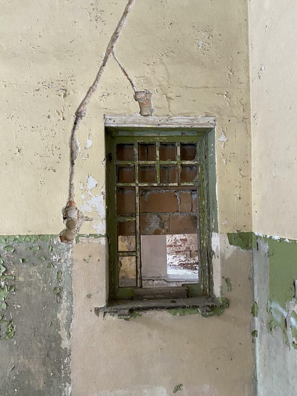 Rudnica. Pomieszczenie nastawni, mieszczące się w przybudówce do budynku dworca. Bez okien. Bez zegara. Co ciekawe, od 2008 dewastacja stacji tylko nieznacznie się pogorszyła. Tzn. w 2008 od razu mocno rozkradziono elementy konstrukcyjne i wyposażenie.