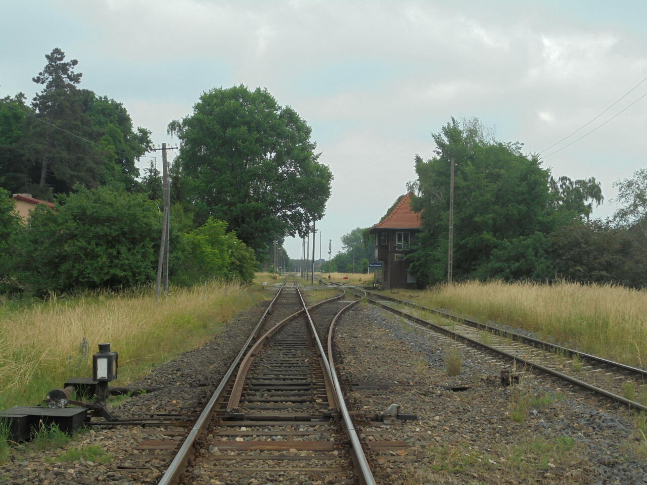 Wjazd na zamkniętą stację od strony Grodźca Małego/Głogowa. Widok w kierunku północno-wschodnim. Po prawej nastawnia SD.